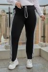 Контрастні лампаси по боках створюють виразний спортивний акцент та візуально подовжують силует. Пояс на м’якій резинці зі шнурком дозволяє легко регулювати посадку і обʼєм, забезпечуючи максимальний комфорт протягом дня.