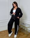 Штани - вільна комфортна посадка , прямі, еластичний пояс на резинці, бокові кишені, декоративні вставки з лампасами в нижній частині.