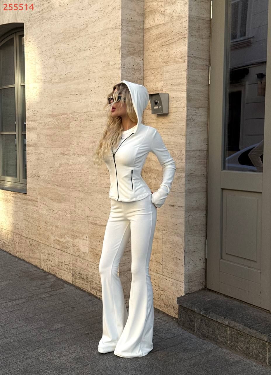 Стильний та комфортний костюм із мʼякого велюру – ідеальний вибір для створення модного образу! Комплект складається з кофти на блискавці з довгими рукавами з вирізом для пальчика та подвійним капюшоном , та стильних штанів -кльош від коліна, які візуально роблять вас стрункішими та вищими. Матеріал приємний до тіла, еластичний, добре тягнеться та підкреслює гарно фігуру.