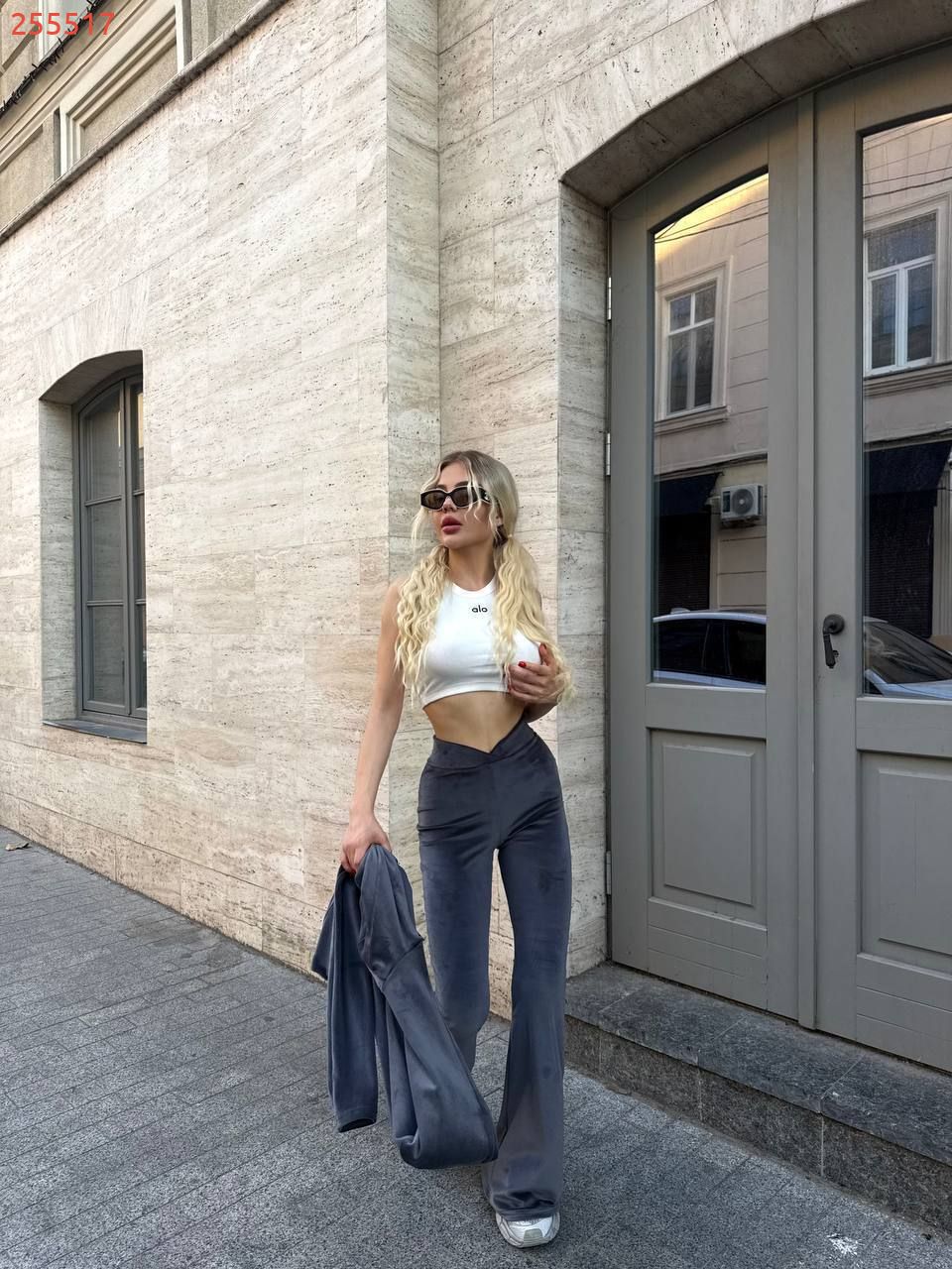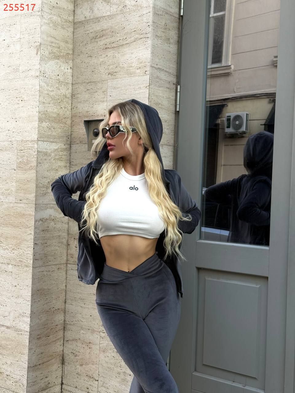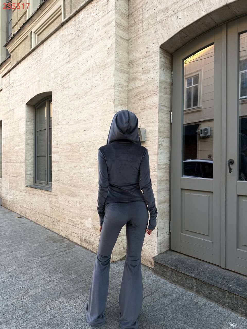 Стильний та комфортний костюм із мʼякого велюру сірий №255517