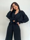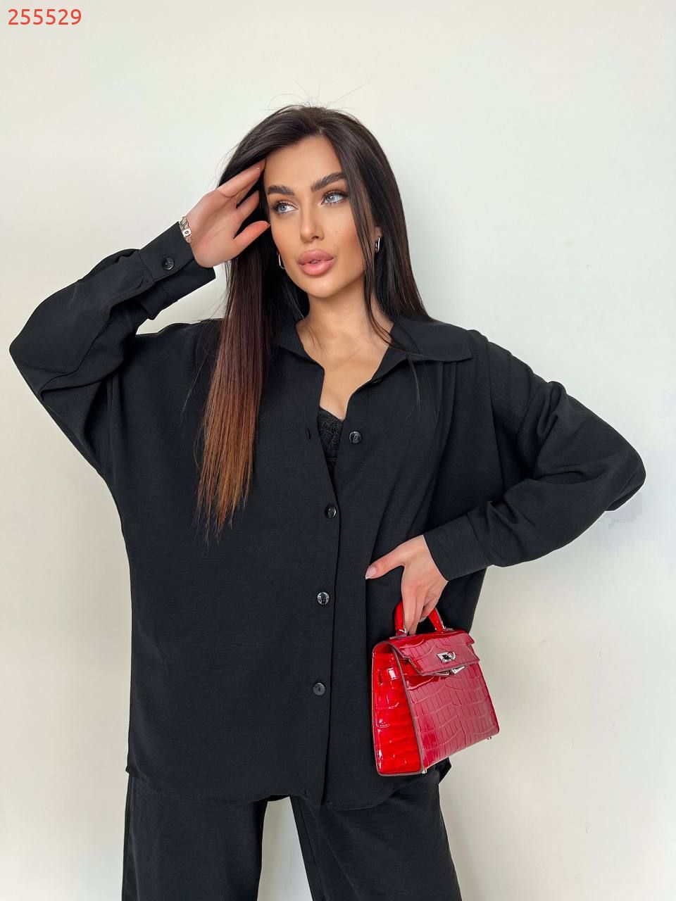 Хіт продажу цього сезону - стильні костюмчики з легкої та приємної тканини, дуже зручний та практичний, сорочка на ґудзиках, штани кльош на високій посадці Ґудзики в колір тканини