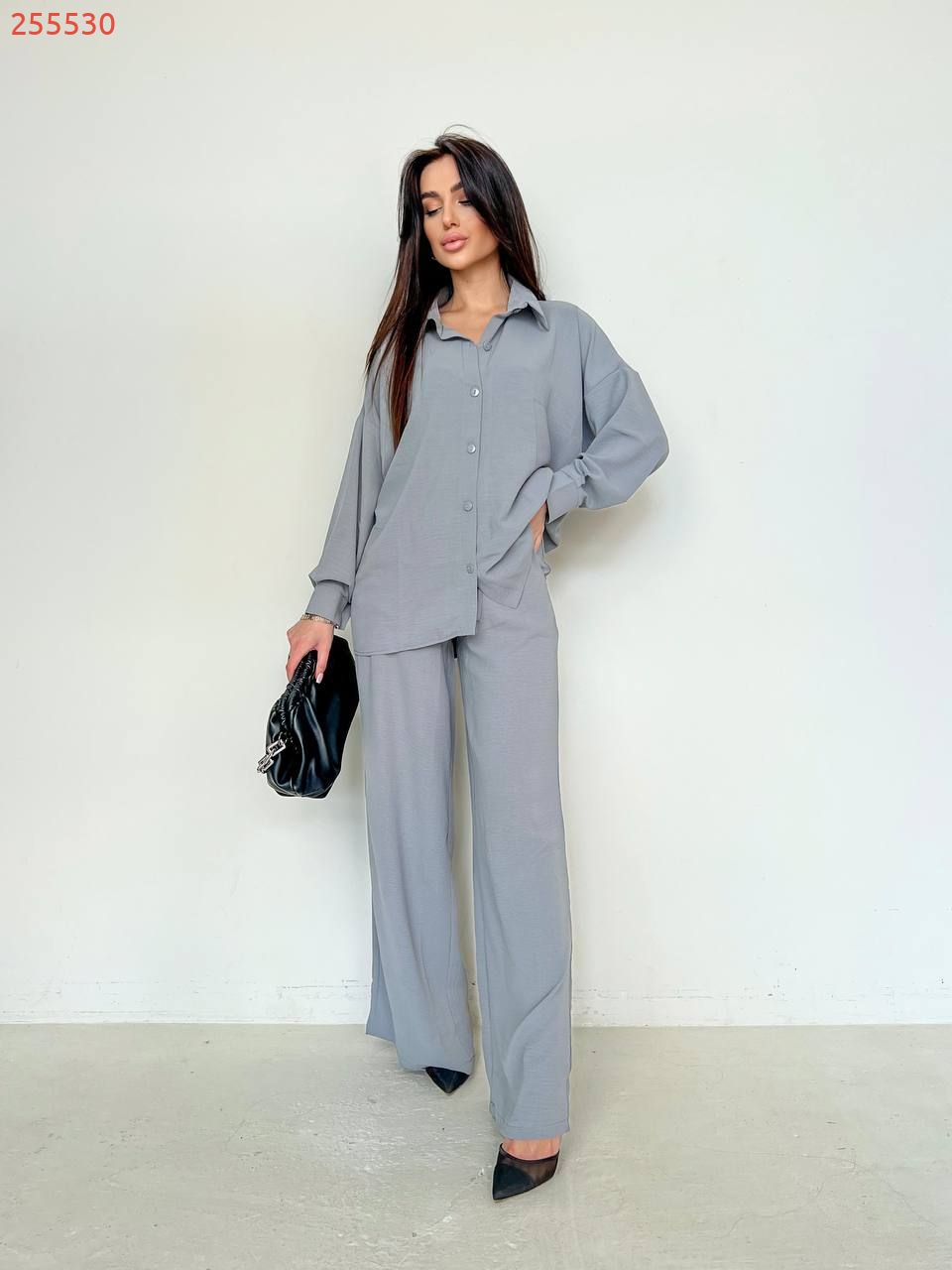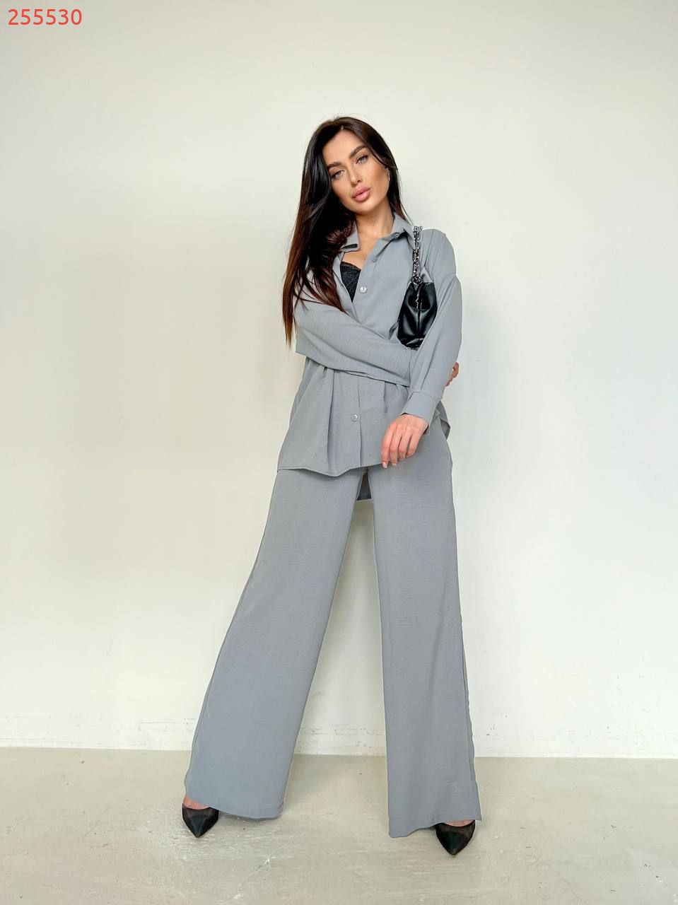 Хіт продажу цього сезону - стильні костюмчики з легкої та приємної тканини, дуже зручний та практичний, сорочка на ґудзиках, штани кльош на високій посадці Ґудзики в колір тканини