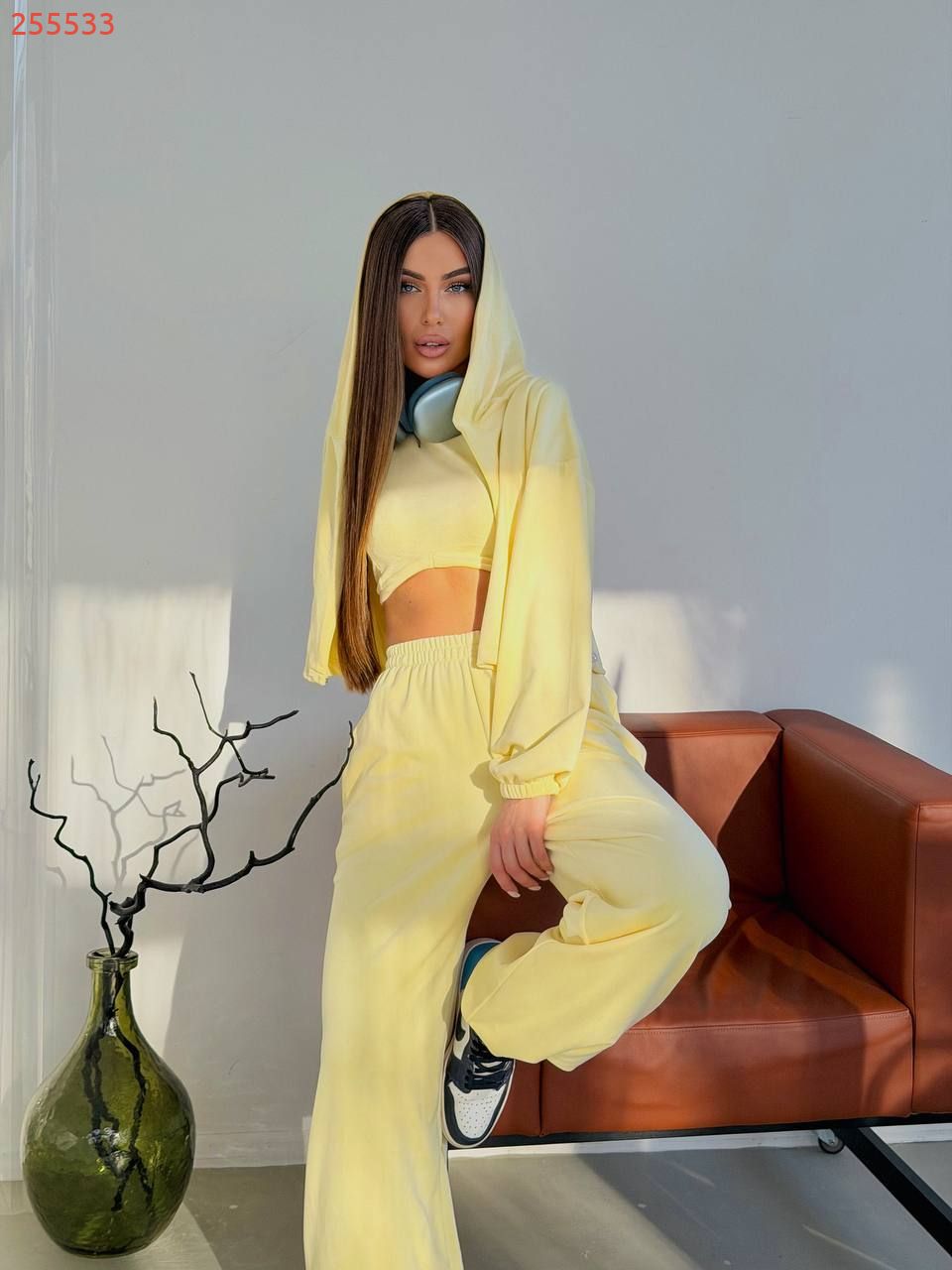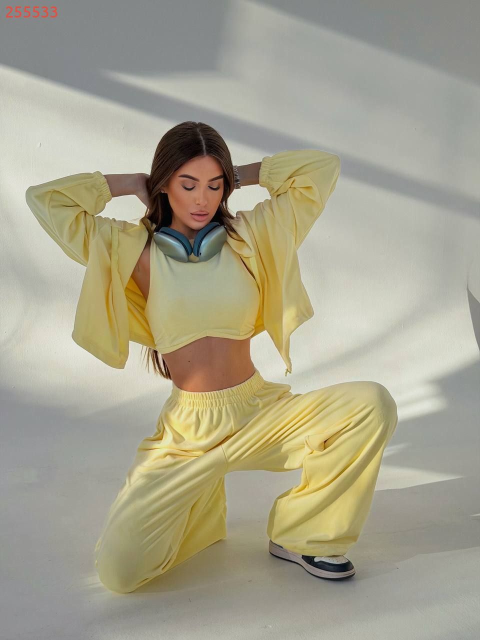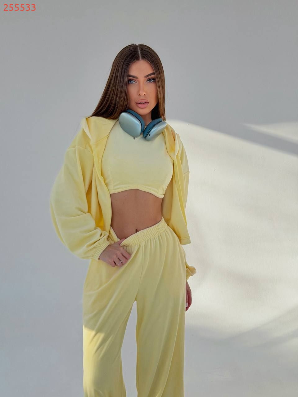 Наша новинка - костюм трійка який складається зі зручного худі на кулісці, стильних штанів які можна носити як джогери і як палаццо і топу. Костюм створений з високоякісної, щільної тканини, яка забезпечує комфорт і зручність