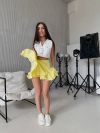 Класно поєднується з топами, сорочками, худі, светри - виходять стильні образи. Нереально пишна , створює ляльковий образ , а шортики під спидничкою додають комфорту, і не потрібно хвилюватись що щось видно
