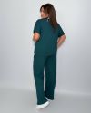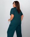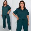 Стильний комфортний костюм “Barcelona” з трикотажу рубчик хб стрейч: футболка у стилі поло оверсайз з Акс + штани прямі розширені з високою посадкою з кішенями у бічних швах, з куліскою на поясі