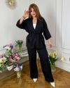 Стильний прогулянковий костюм зі льону «Бохо»: вільний кардиган під пояс + Штани з високою посадкою на гумці, з кишенями у бічних швах та куліскою на поясі.