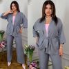 Стильний прогулянковий костюм зі льону «Бохо»: вільний кардиган під пояс + Штани з високою посадкою на гумці, з кишенями у бічних швах та куліскою на поясі.