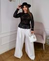 Ця блуза - не просто елемент гардеробу, а втілення стилю та впевненості, здатне зробити будь-яку жінку центром уваги. Вона ідеально поєднується як із класичними брюками, так і зі спідницями. Прозорість блузи, що вуалює, приховує недосконалості фігури, і створює ідеальний силует. Блуза вільного силуету з округлою формою горловини. Спинка без особливостей.