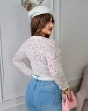 Ця блуза - не просто елемент гардеробу, а втілення стилю та впевненості, здатне зробити будь-яку жінку центром уваги. Вона ідеально поєднується як із класичними брюками, так і зі спідницями. Прозорість блузи, що вуалює, приховує недосконалості фігури, і створює ідеальний силует. Блуза вільного силуету з округлою формою горловини. Спинка без особливостей.