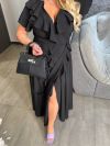 Тканина: софт-шовк. Довжина 143см, одягається на запах. Ідеальна посадка. Спідниця-напівсонце – не повнить. Підкладка спідниці довжиною 47 см. Легке, приємне до тіла. Прикрашення- паси - Тренд цього сезону. Вони роблять сукню повітряною , додають шарм.