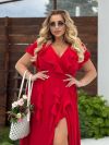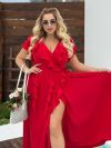 Тканина: софт-шовк. Довжина 143см, одягається на запах. Ідеальна посадка. Спідниця-напівсонце – не повнить. Підкладка спідниці довжиною 47 см. Легке, приємне до тіла. Прикрашення- паси - Тренд цього сезону. Вони роблять сукню повітряною , додають шарм.