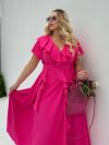 Тканина: софт-шовк. Довжина 143см, одягається на запах. Ідеальна посадка. Спідниця-напівсонце – не повнить. Підкладка спідниці довжиною 47 см. Легке, приємне до тіла. Прикрашення- паси - Тренд цього сезону. Вони роблять сукню повітряною , додають шарм.