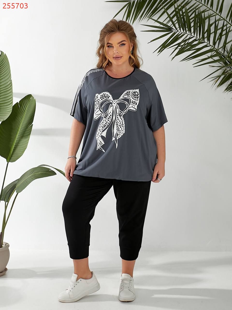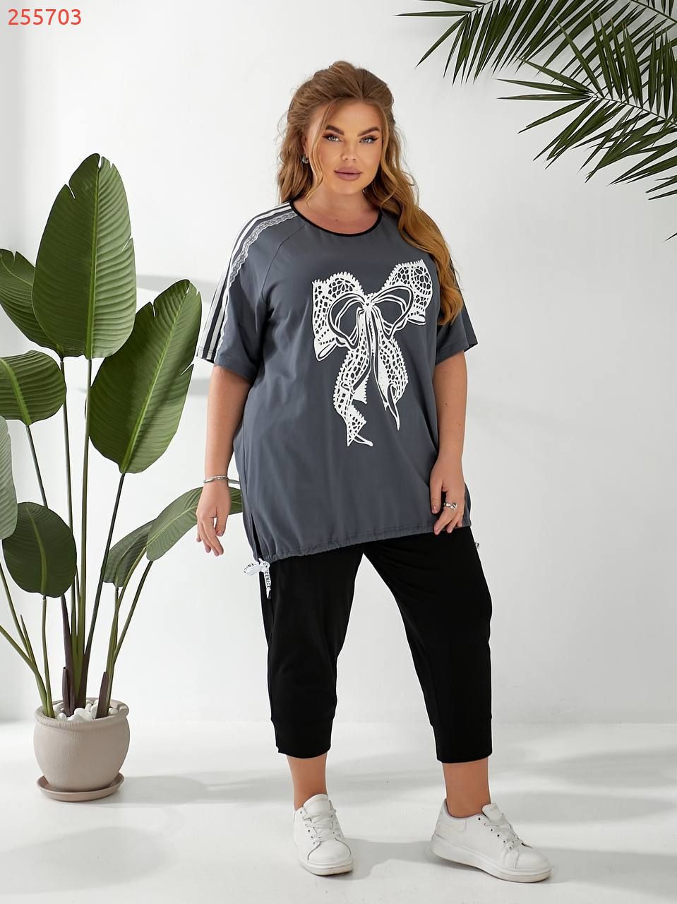 Виміри виробу у спокійному стані : довжина футболки 84 см, довжина капрей 87 см