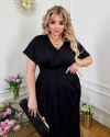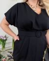 Плаття з v-образним вирізом, спереду та ззаду по низу розрізи, з боків кишені , ззаду по спинці молнія , рукав прикриває біцепс, пояс виготовлений з основної тканини ( входить в комплект).