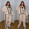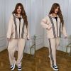 Штани з високою посадкою , пояс на гумці , бічні кишені , бічні ломпаси . Кофта з капюшоном прямого покрою на блискавці , з кишенями , низ на фіксаторі .