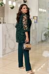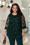 Комплект двох предметний, складається з блузки та штанів. У такому вбранні жінка виглядатиме елегантно, святково на будь-якій події. Блузка напівприлеглого силуету виготовлена з флока на сітці. Горловина округлої форми. Полиця з нагрудними виточками. Рукав втічний, вільний 3/4. Штани злегка звужені донизу. Прекрасний вибір для вашого образу, який поєднує в собі красу та зручність.