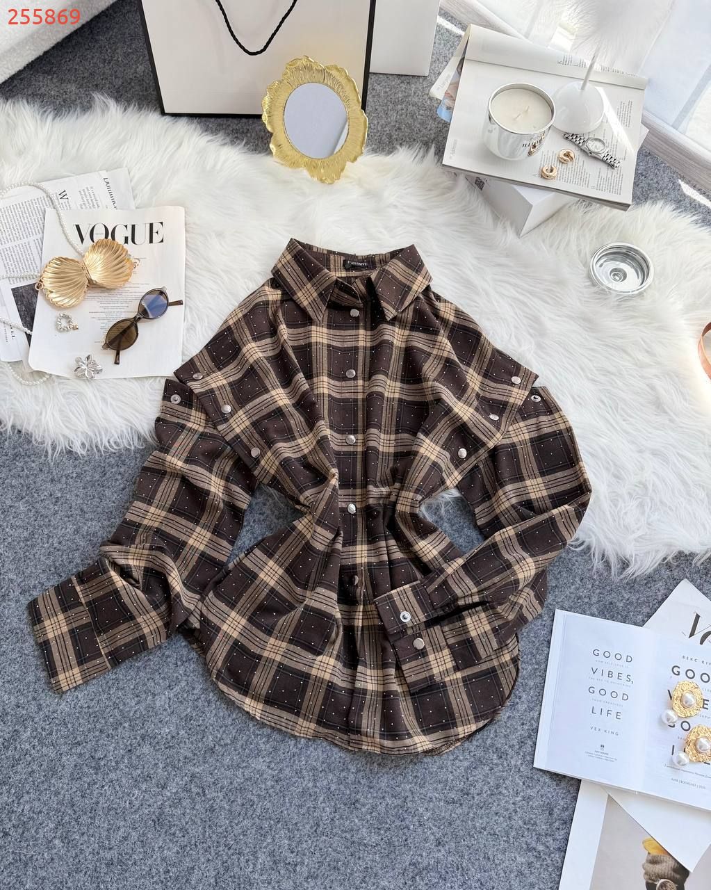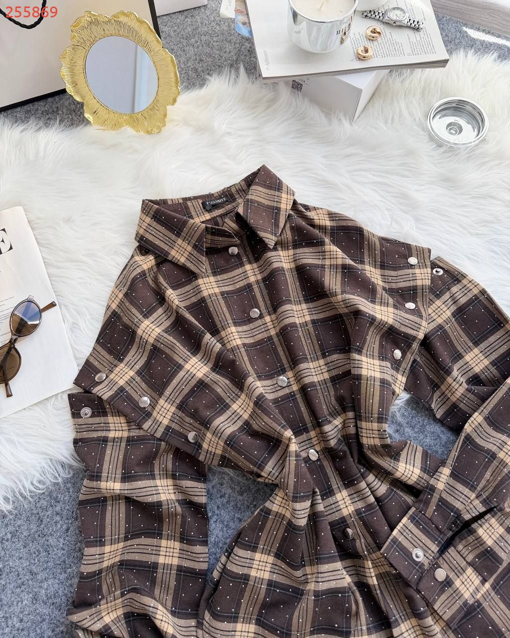 Базова сорочка в клітинку в різних варіантах носіння. Блискучі камінчики додають вишуканості речі. Рукава відстібаються повністю, або можна носити з розрізами на плечах. Якісна тканина, легка та приємна до тіла. Сорочка йде подовжена та вільного оверсайз фасону.