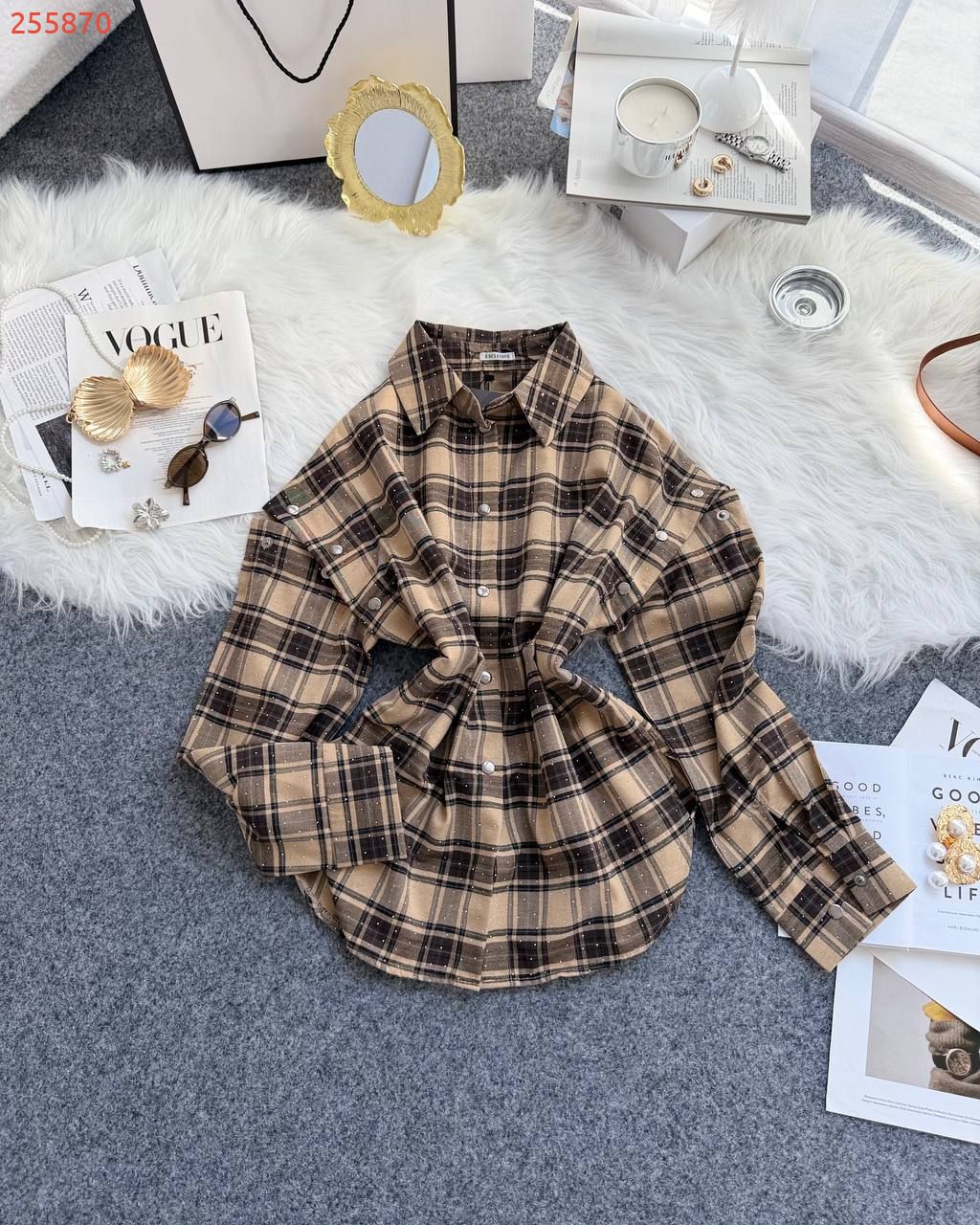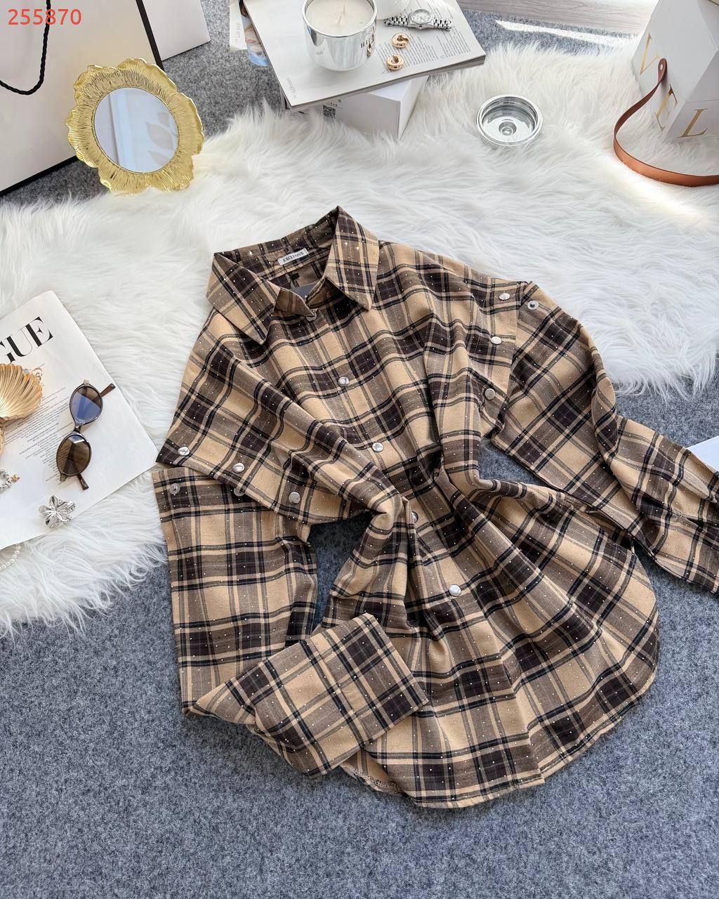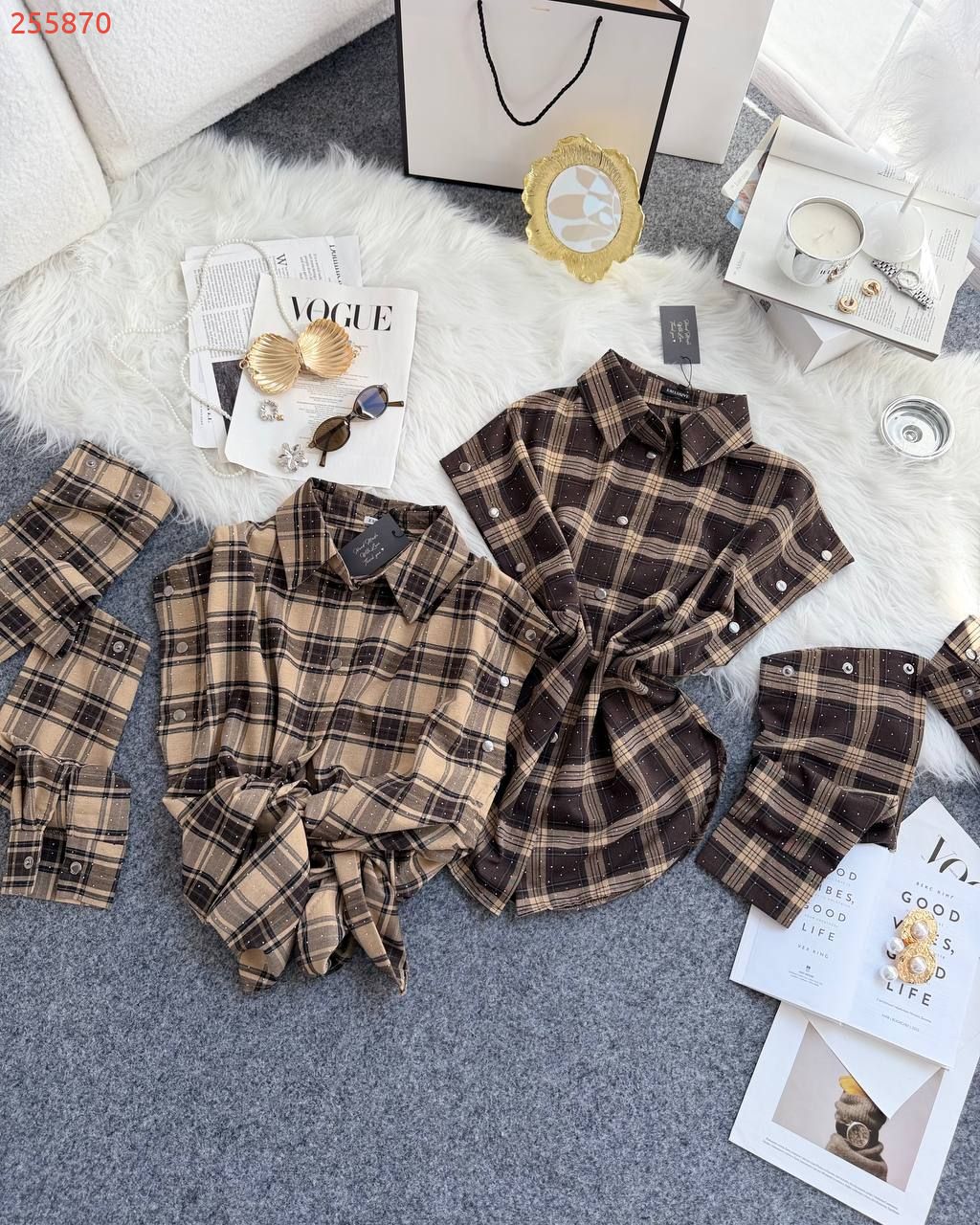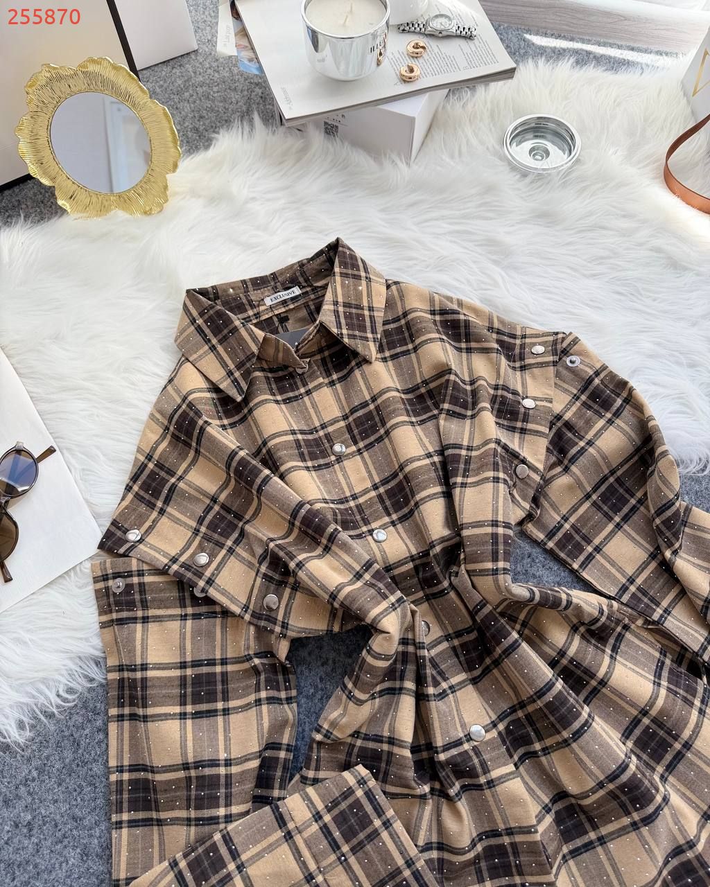 Базова сорочка в клітинку в різних варіантах носіння. Блискучі камінчики додають вишуканості речі. Рукава відстібаються повністю, або можна носити з розрізами на плечах. Якісна тканина, легка та приємна до тіла. Сорочка йде подовжена та вільного оверсайз фасону.