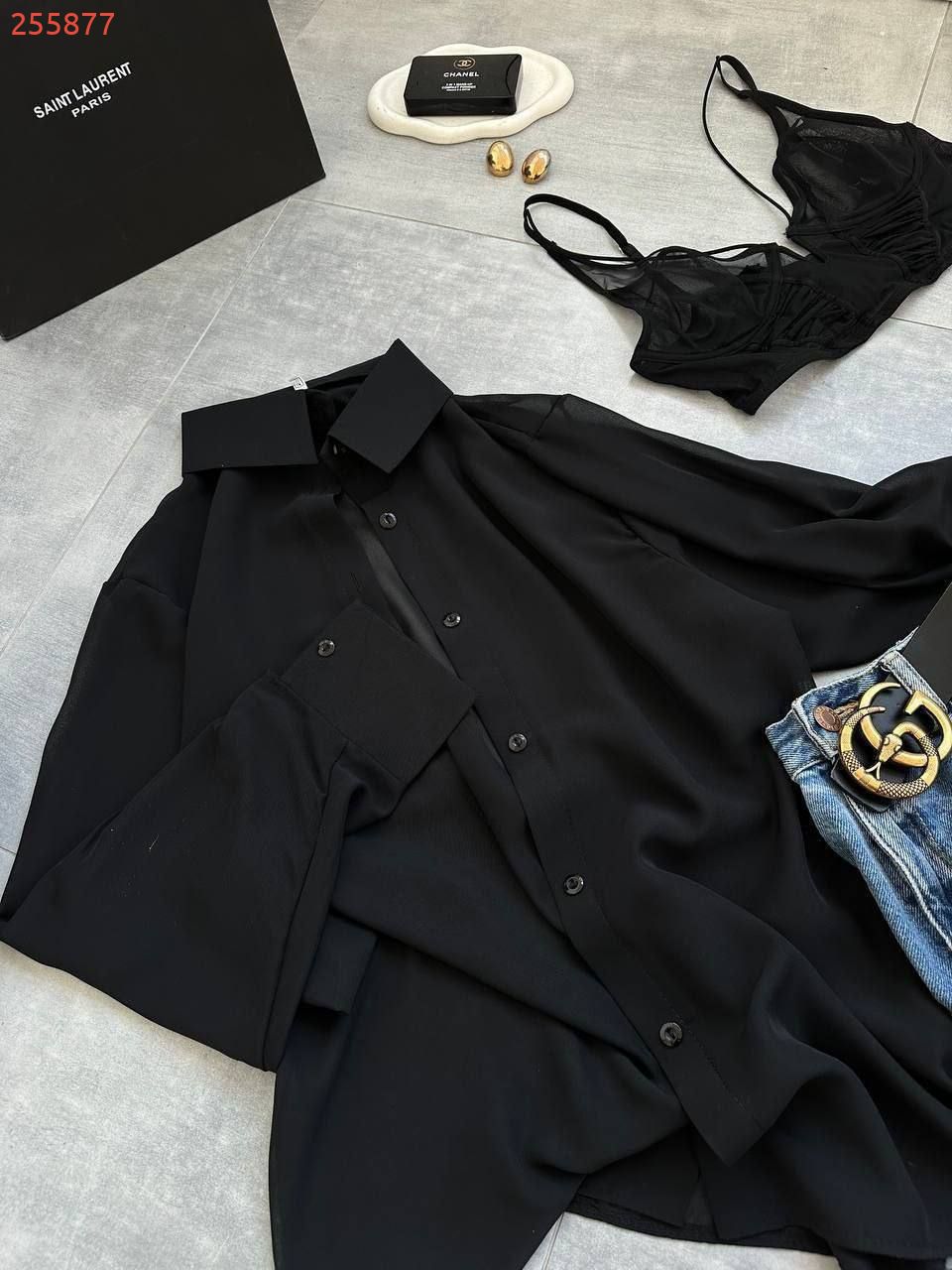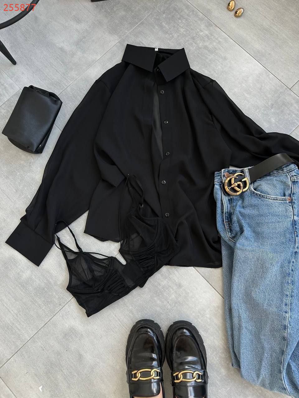 Сорочка шифонова чорна №255877