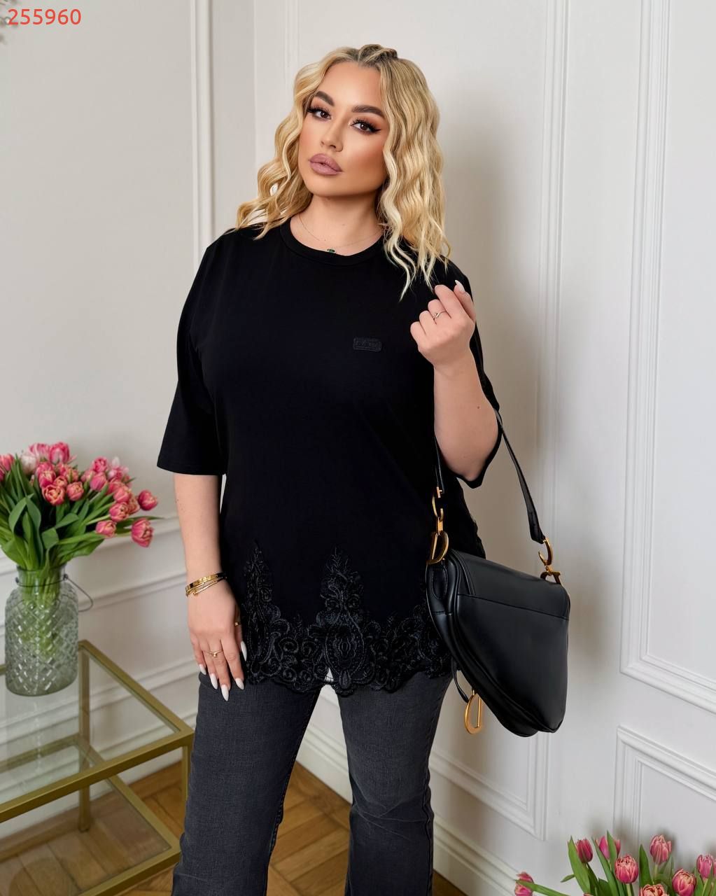 упер стильна футболка в стилі OVER, подовжена! З турецьким красивим мереживом! В цьому сезоні тренд на такі круті речі з мереживом ( мереживо може мінятися)