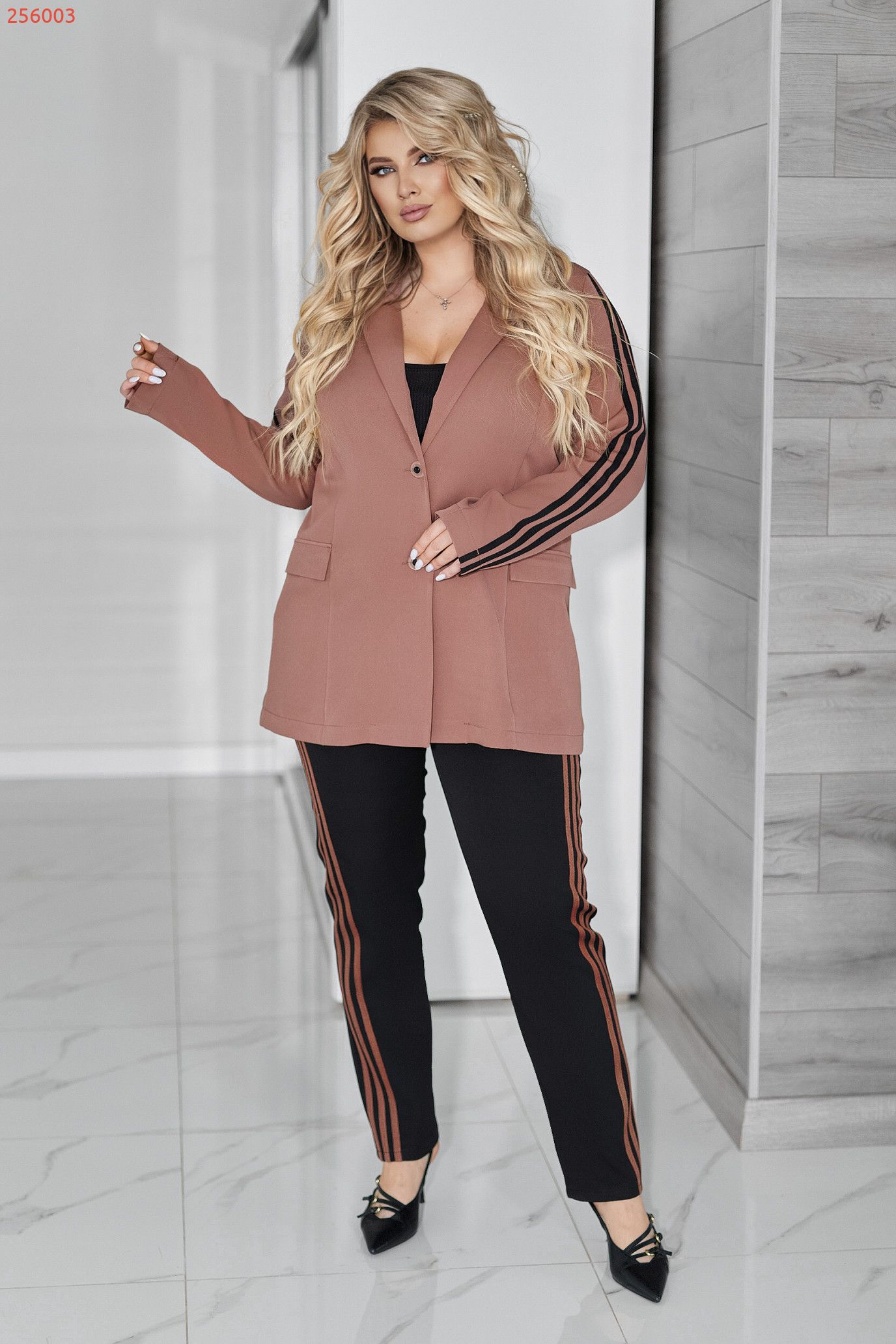 Костюм у стилі casual з елементами спорту та гламуру — виглядає дорого і сучасно.