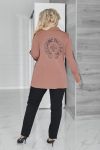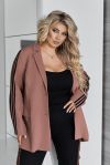 Піджак вільного крою, з класичним відкладним коміром, застібається на ґудзики.