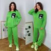 Штани - банани з високою посадкою , пояс на гумці , бічні кишені . Лонгслів вільного покрою , шкіряна нашивка .