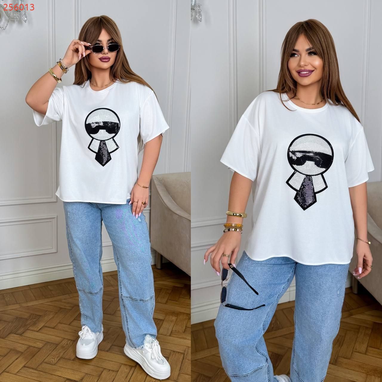 Футболка вільно покрою з спущеним рукавом , якісна нашивка .
