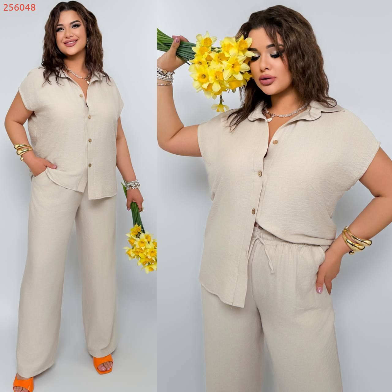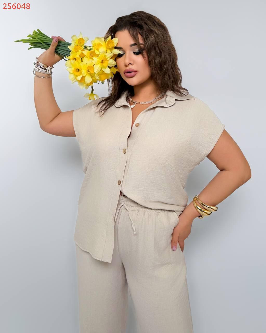 Костюм з легкого льону бежевий №256048
