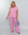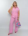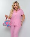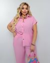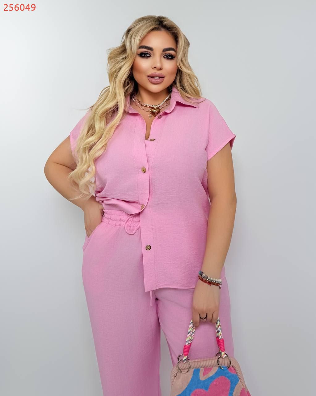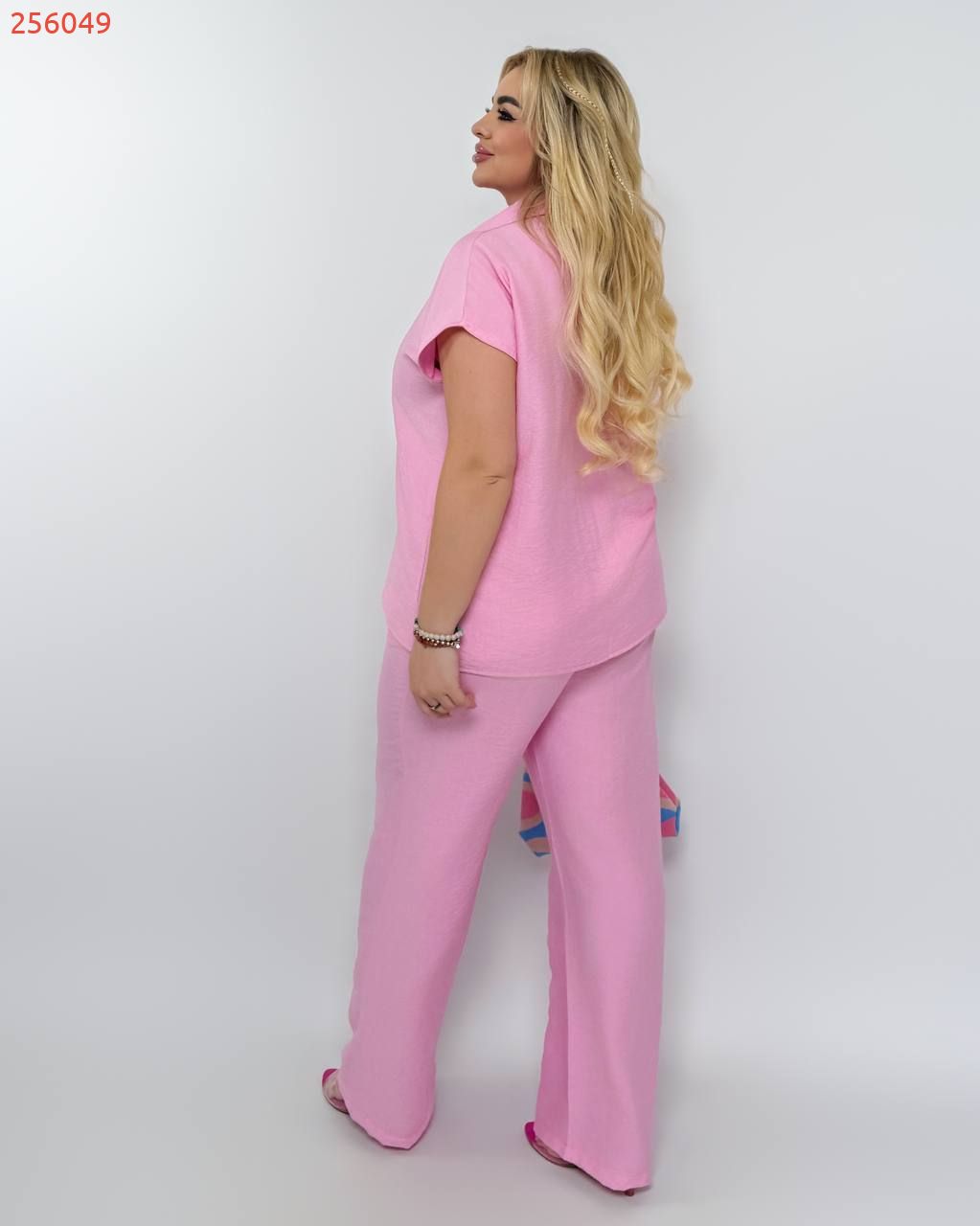 Костюм з легкого льону: штани з посадкою вище середнього на гумці та куліскою на поясі, з кишенями у бічних швах + сорочка на ґудзиках