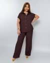 Костюм з легкого льону: штани з посадкою вище середнього на гумці та куліскою на поясі, з кишенями у бічних швах + сорочка на ґудзиках