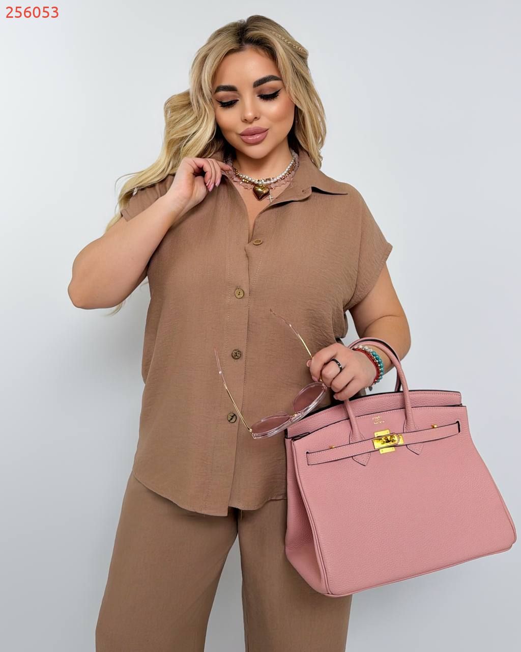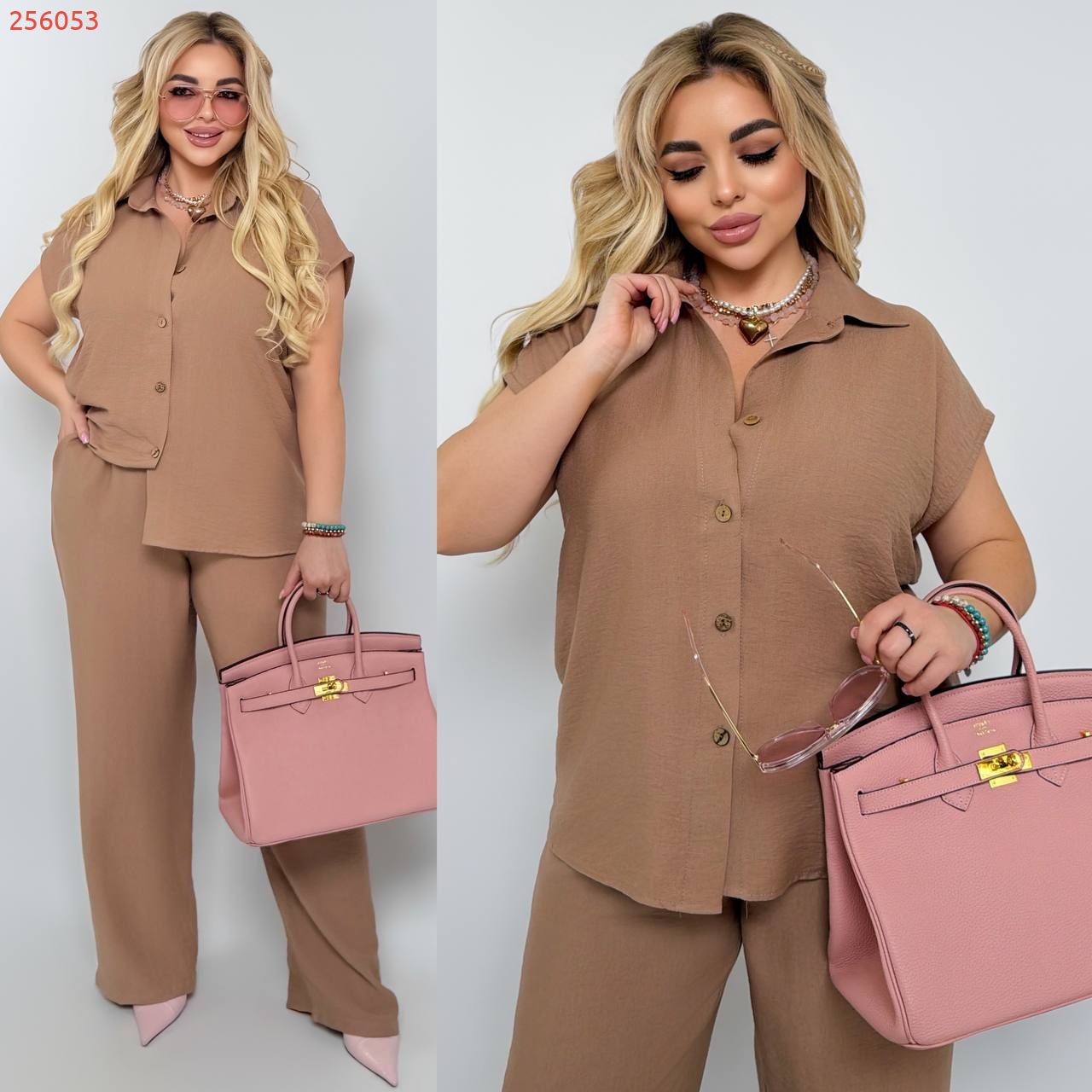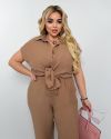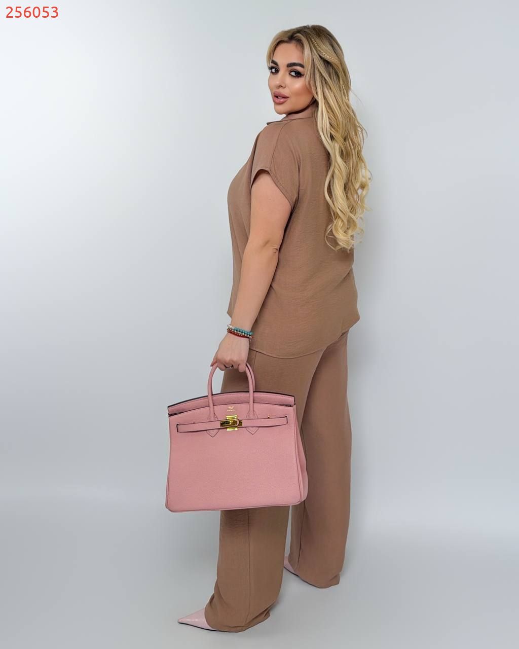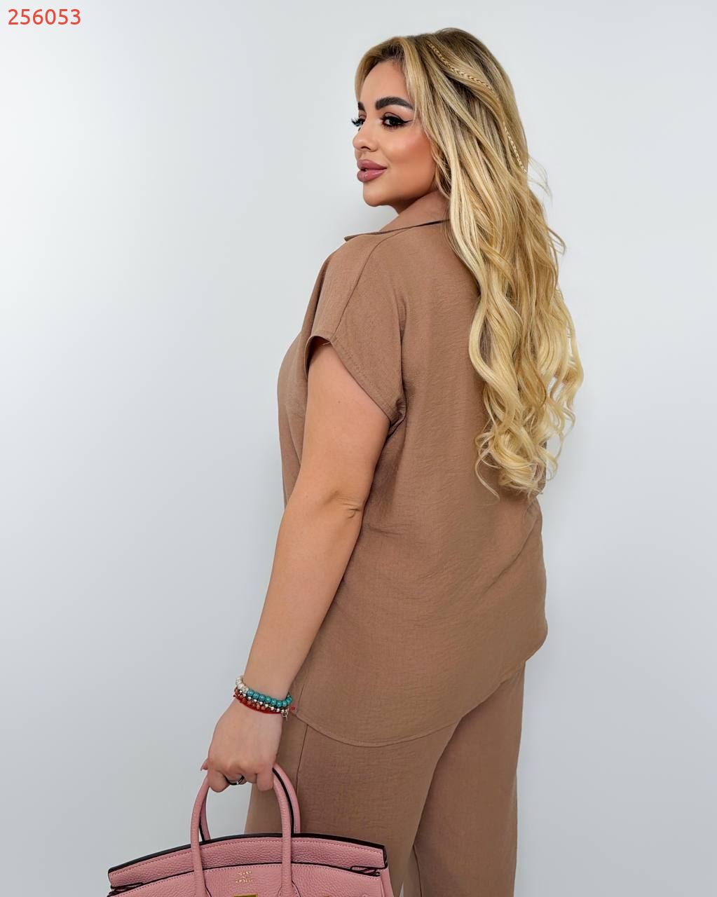 Костюм з легкого льону кемел №256053