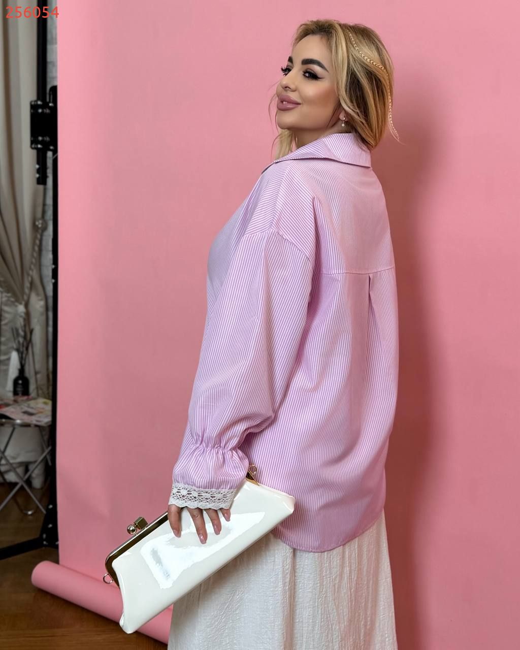 Сорочка вільного крою рожево-молочний №256054