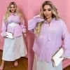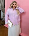 Сорочка вільного крою із софт-котону на ґудзиках та мереживом на рукавах