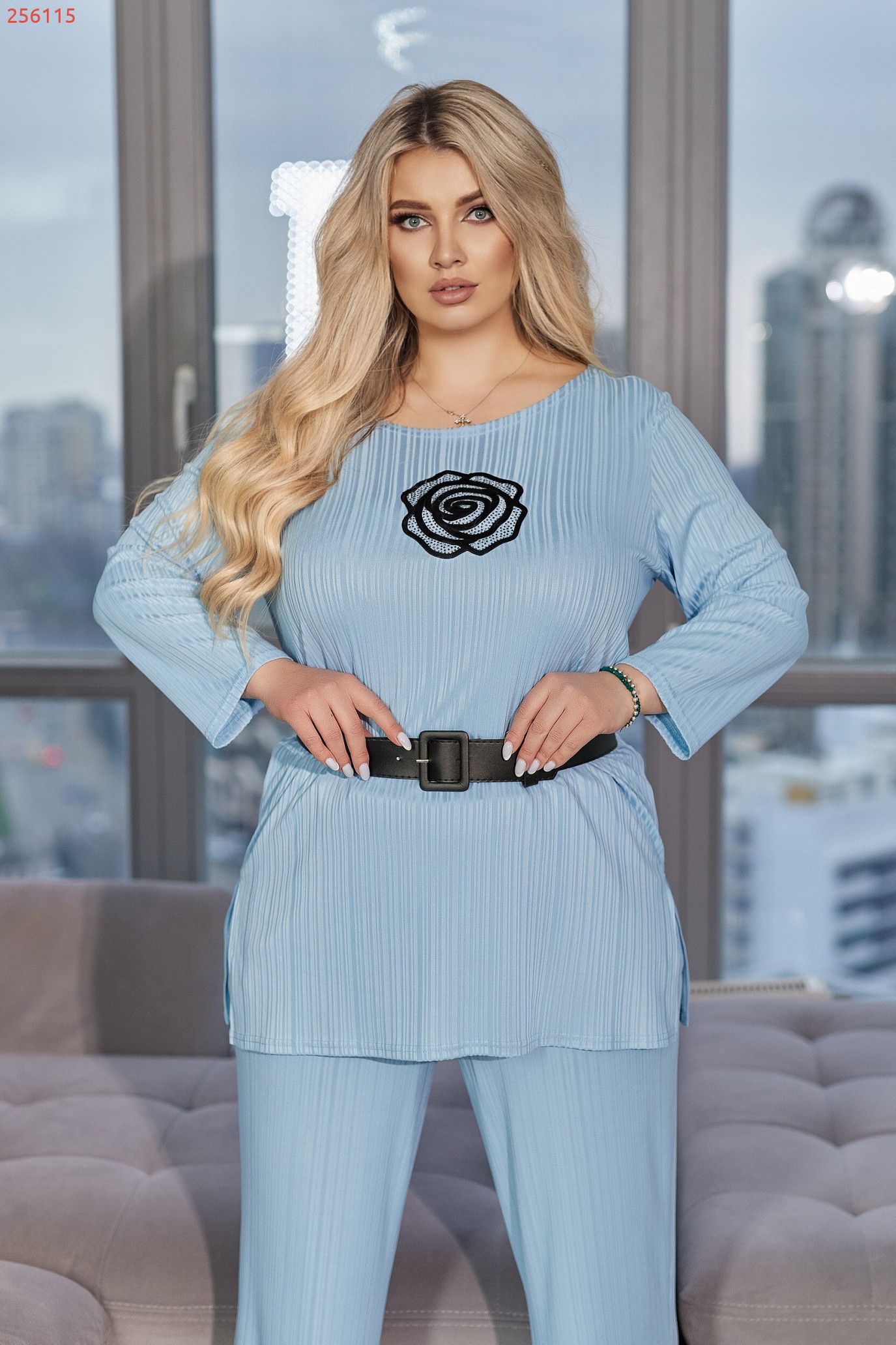 Стильний і комфортний костюм, який гарно сідає по фігурі та дарує легкість у русі. Подовжена кофтинка з боковими розрізами виглядає сучасно та візуально витягує силует.