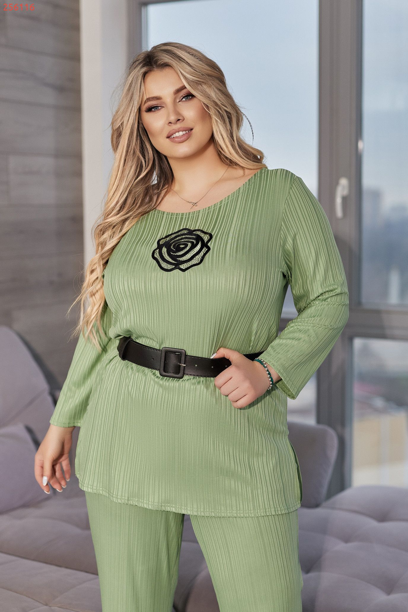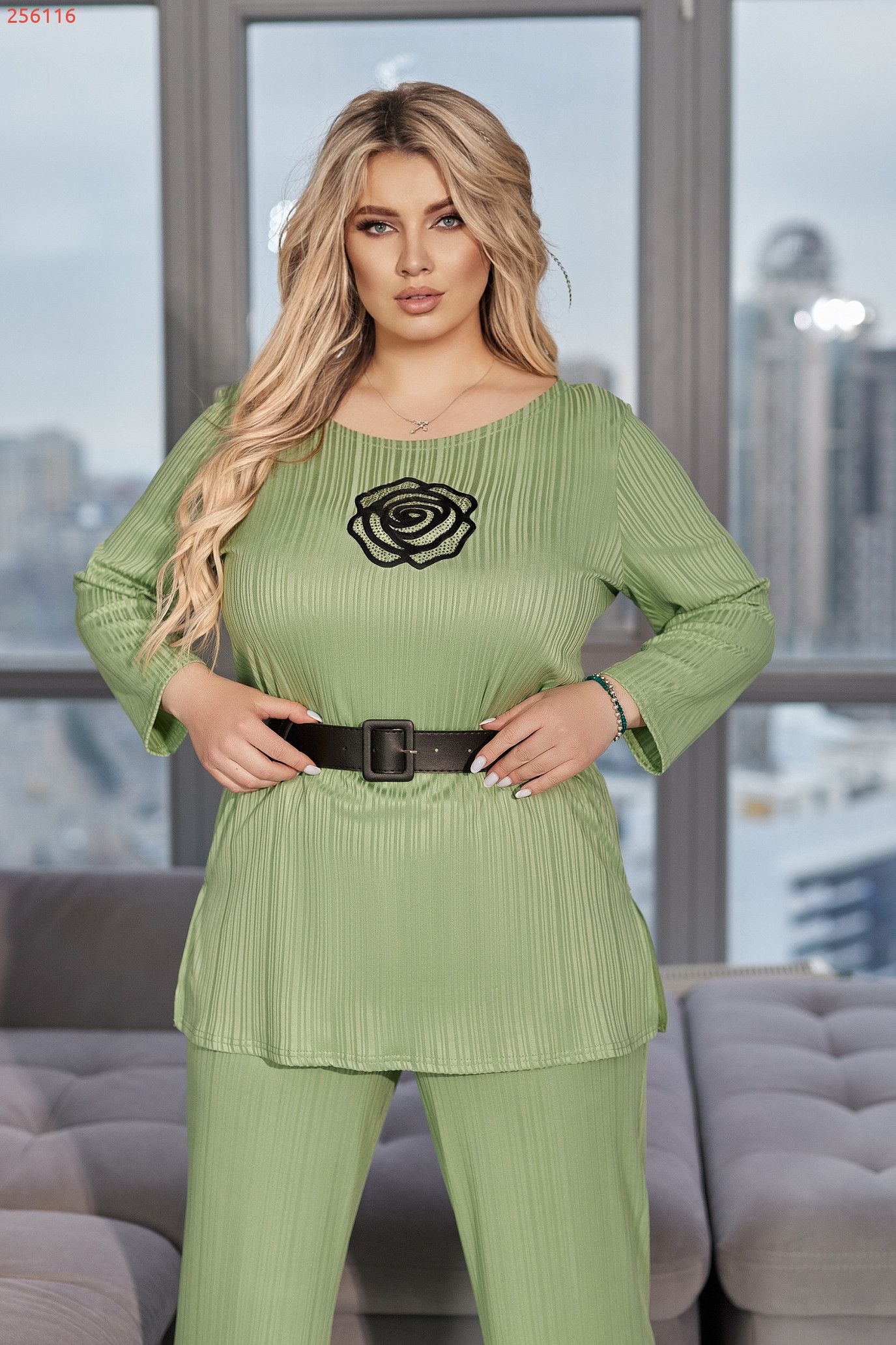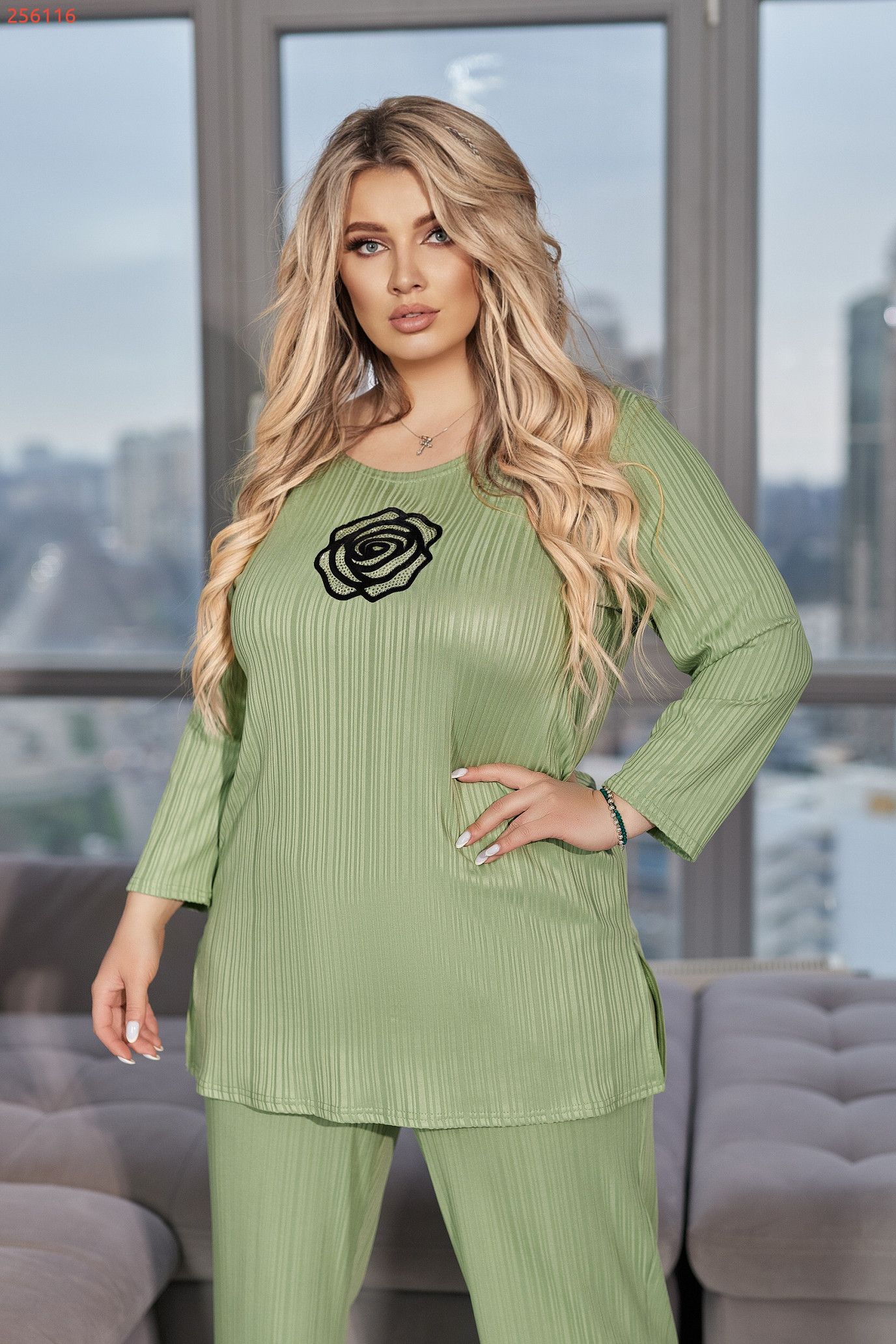 Стильний і комфортний костюм, який гарно сідає по фігурі та дарує легкість у русі. Подовжена кофтинка з боковими розрізами виглядає сучасно та візуально витягує силует.