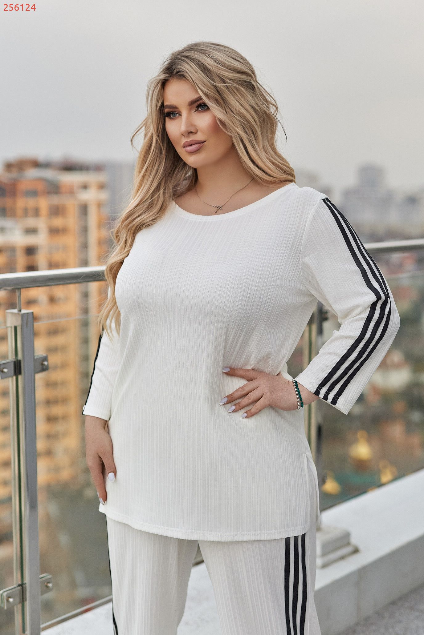 Стильний і комфортний костюм, який гарно сідає по фігурі та дарує легкість у русі. Подовжена кофтинка з боковими розрізами виглядає сучасно та візуально витягує силует.