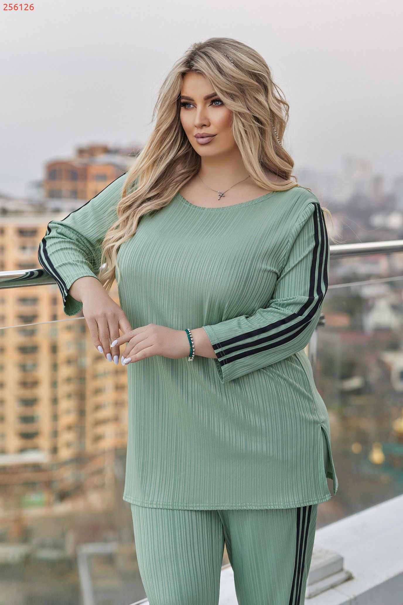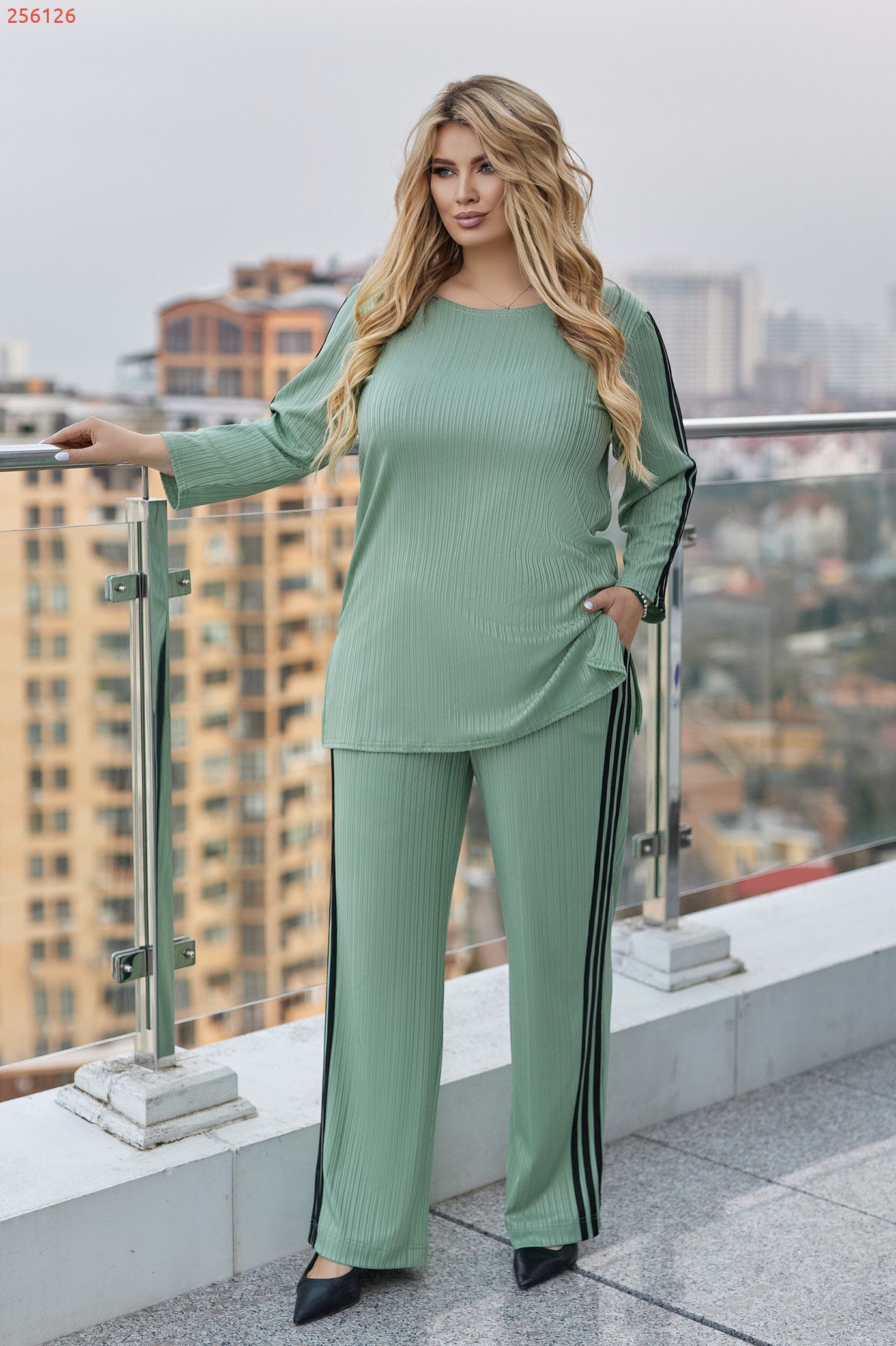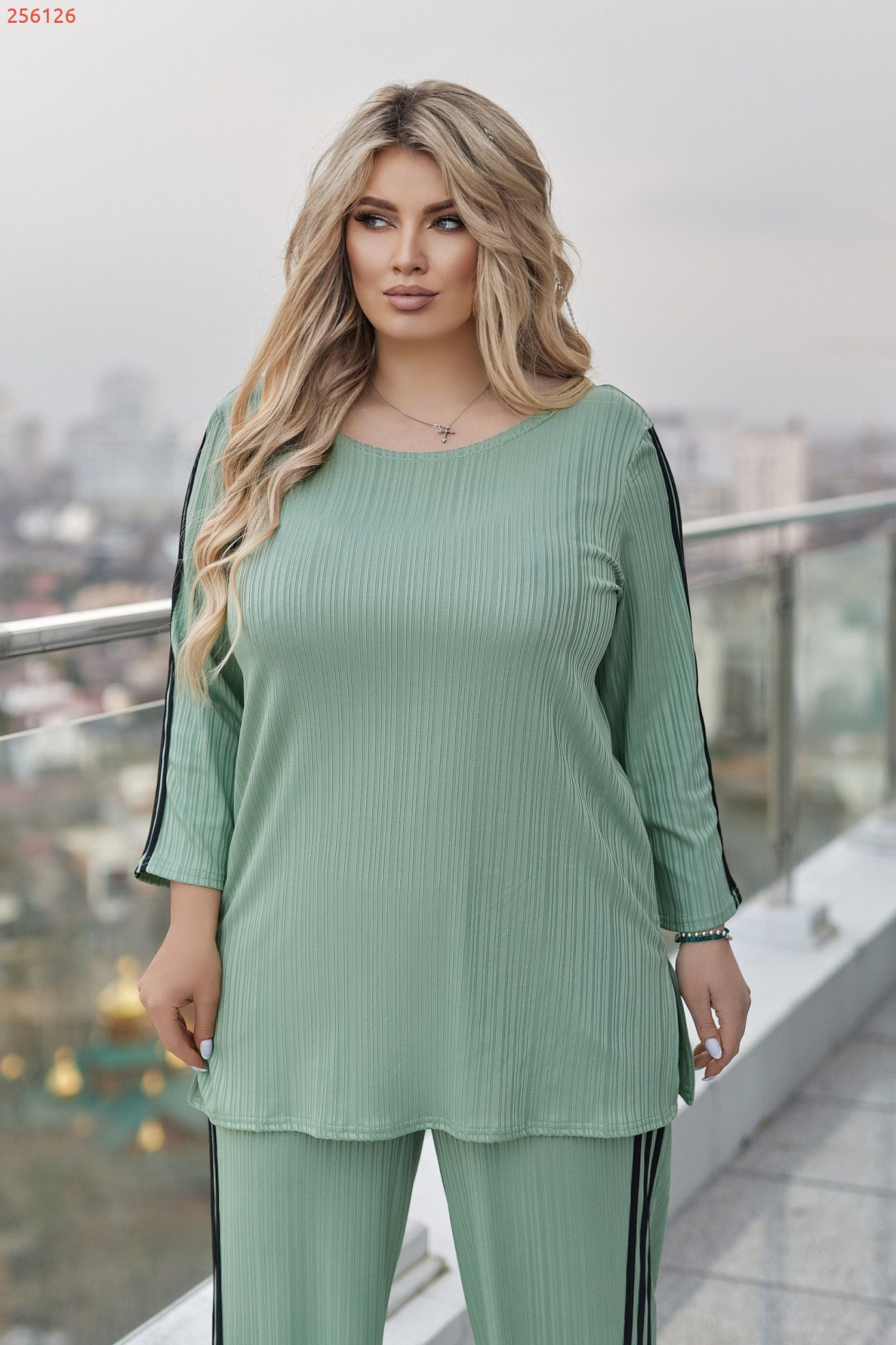 Стильний і комфортний костюм, який гарно сідає по фігурі та дарує легкість у русі. Подовжена кофтинка з боковими розрізами виглядає сучасно та візуально витягує силует.