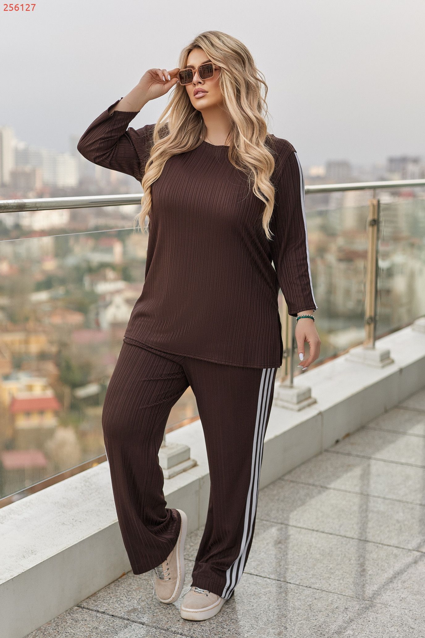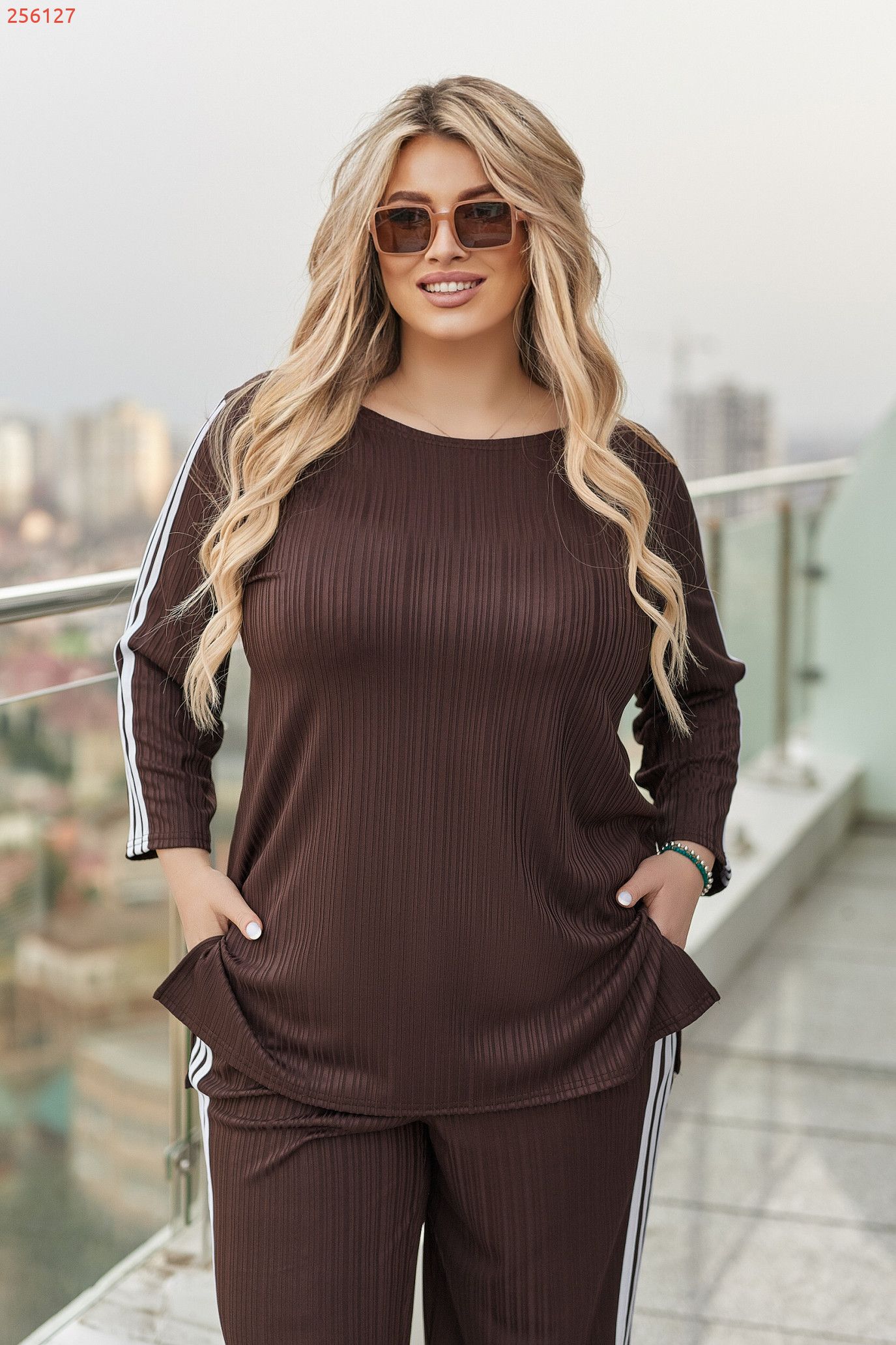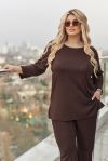 Стильний і комфортний костюм, який гарно сідає по фігурі та дарує легкість у русі. Подовжена кофтинка з боковими розрізами виглядає сучасно та візуально витягує силует.