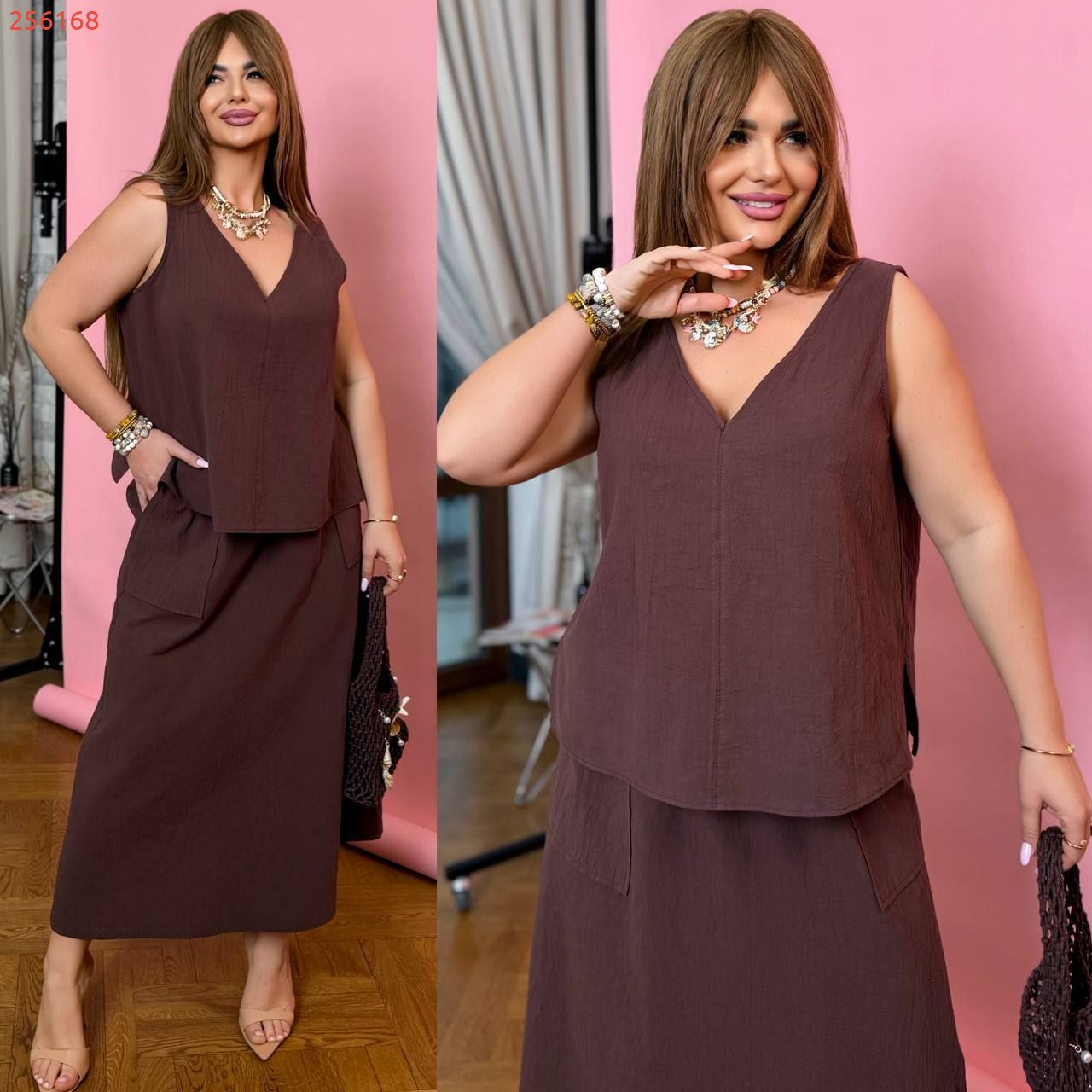 Туніка вільна з розрізами знизу по бокам + спідниця з карманами на гумці)