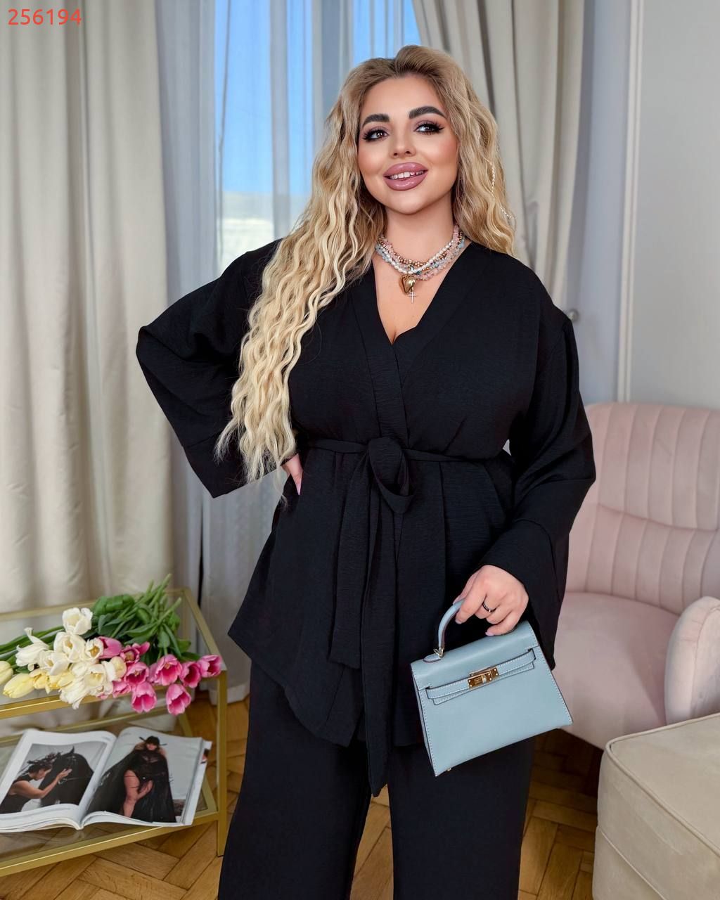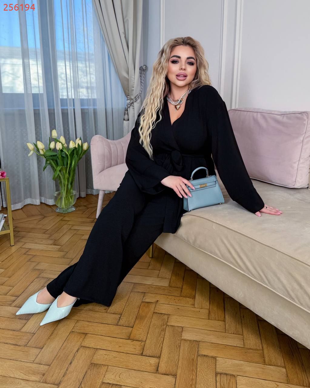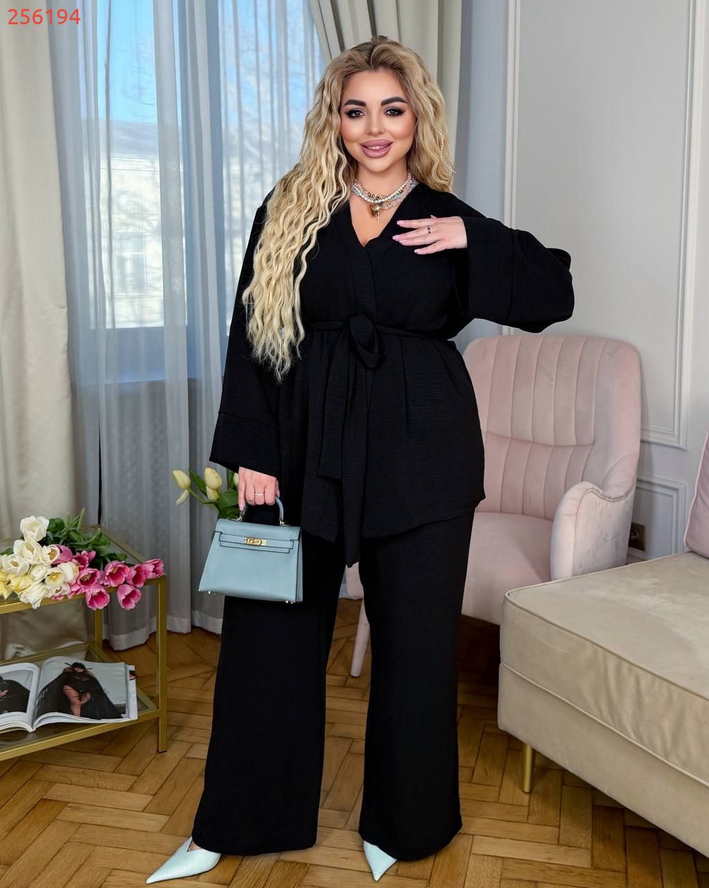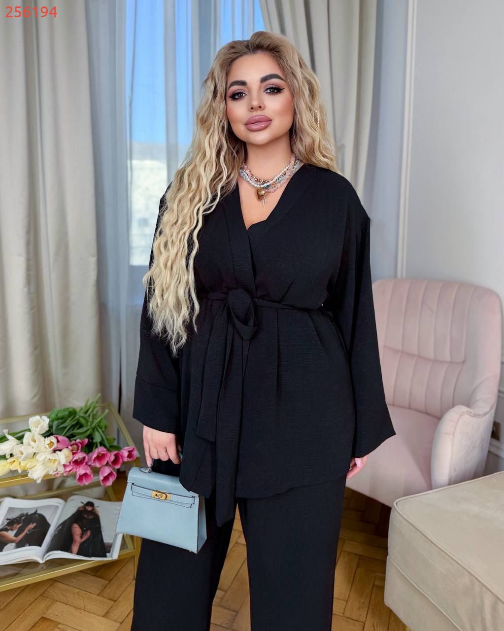 Легкий брючний костюм чорний №256194