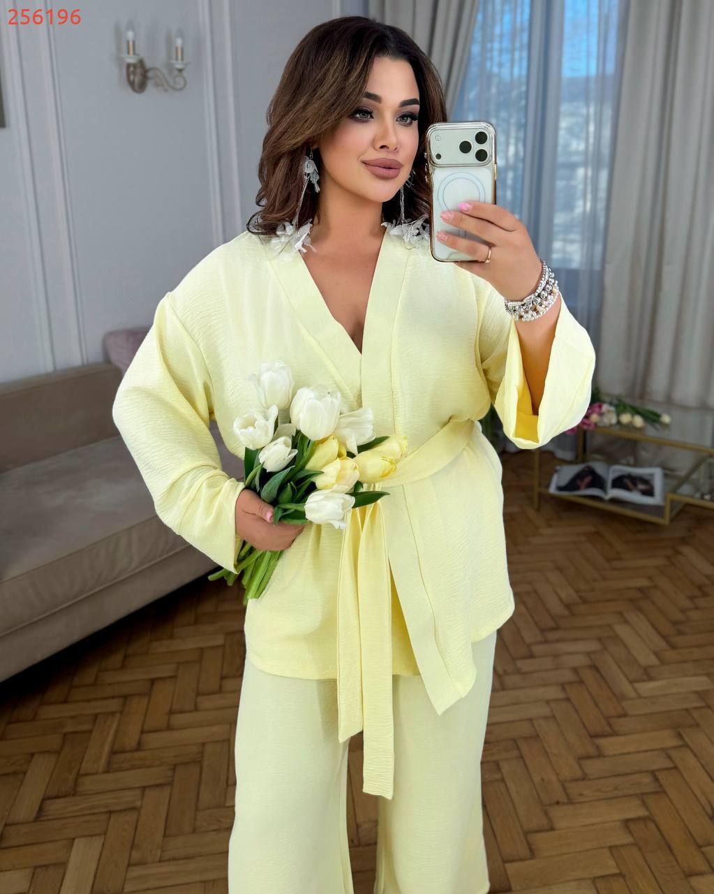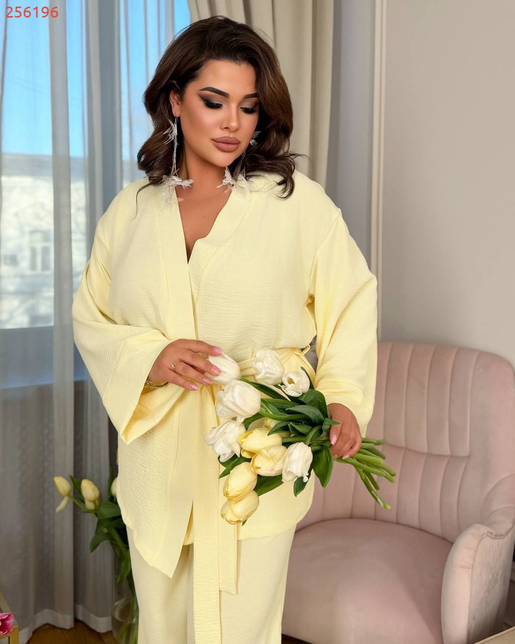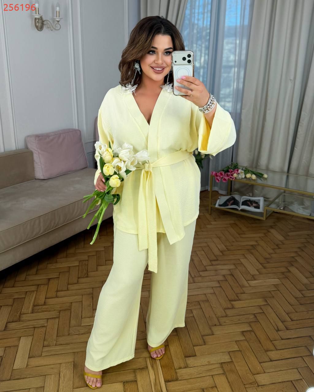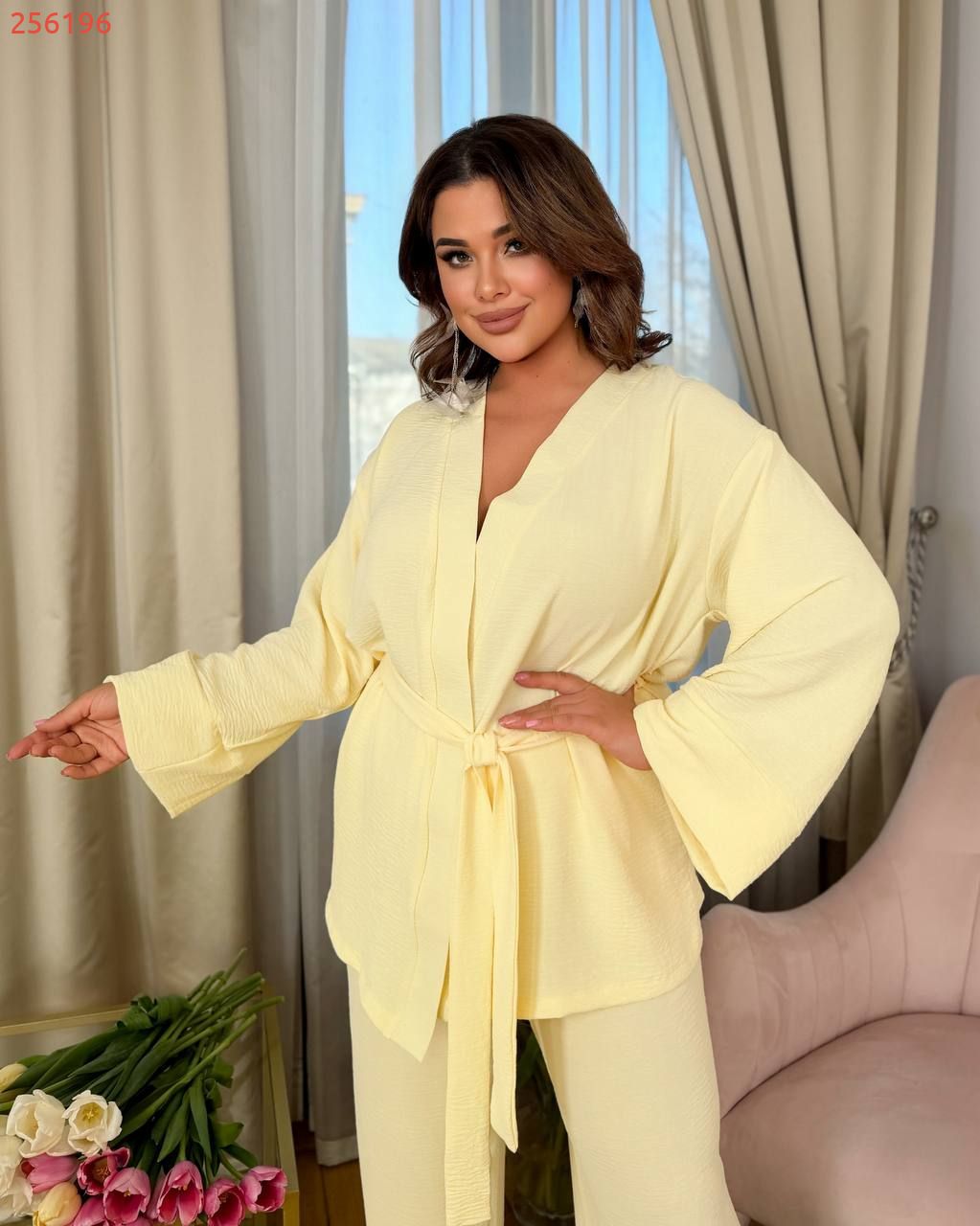 Легкий брючний костюм жовтий №256196