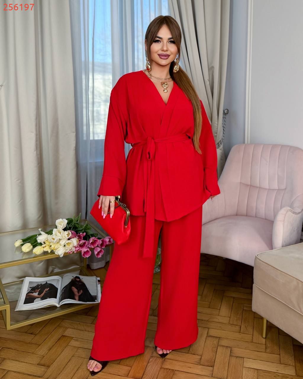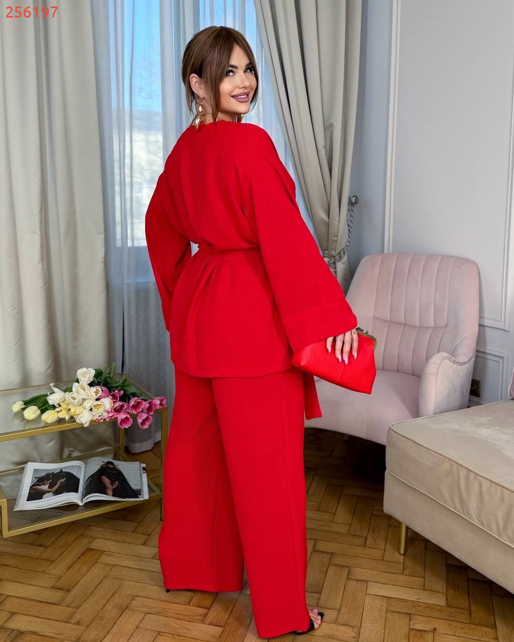 Легкий брючний костюм червоний №256197