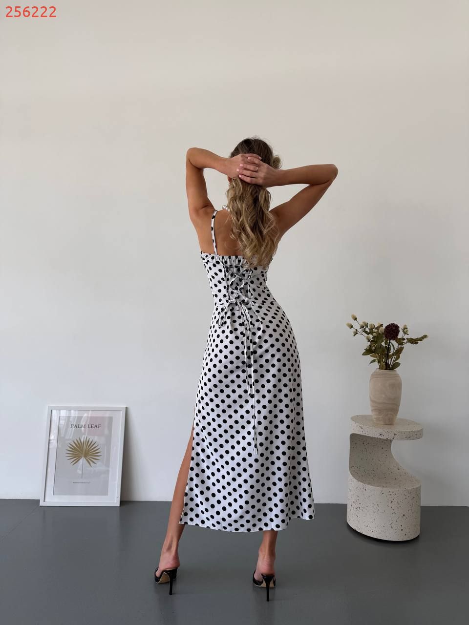 Якщо ви яскрава особистість, вам подобається змінюватися, приміряти нові образи та стилі, значить сукня в горошок зі шнурівкою на спинці створена саме для вас.
